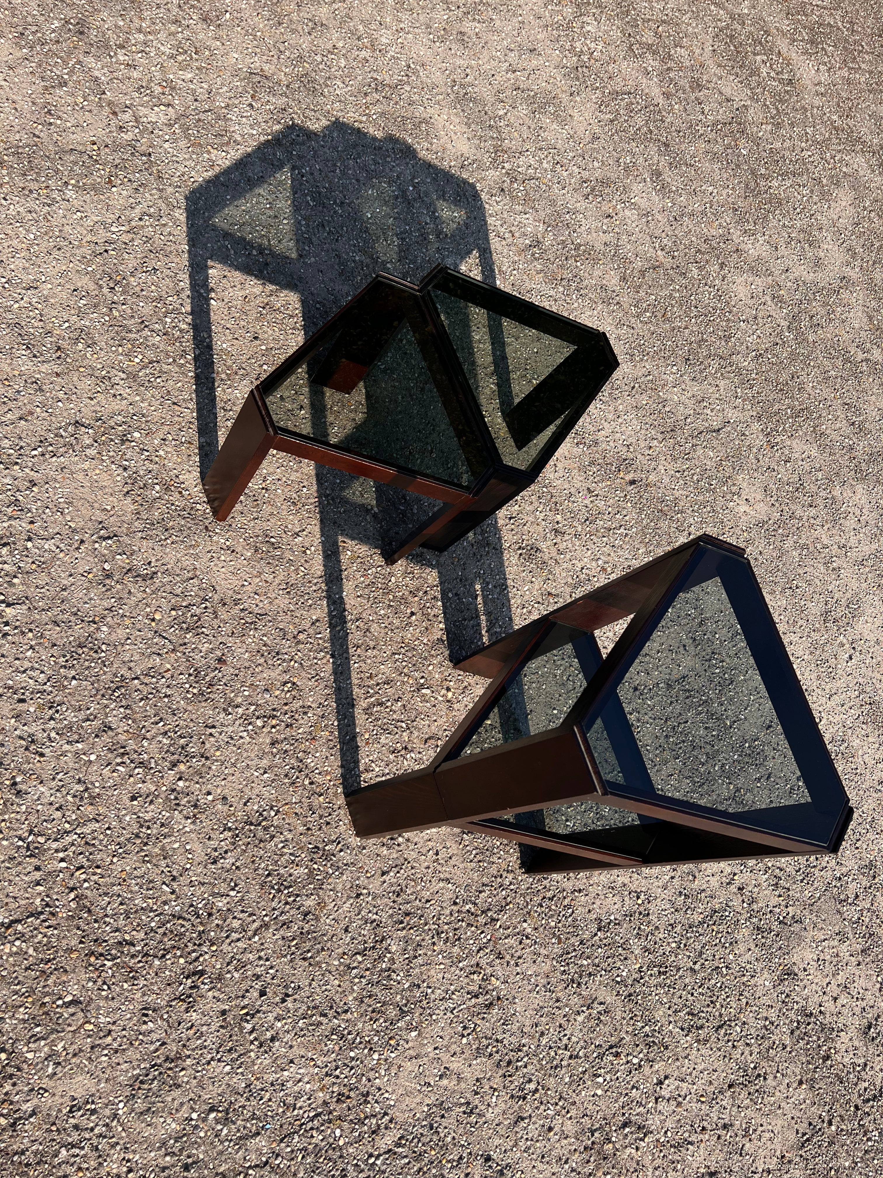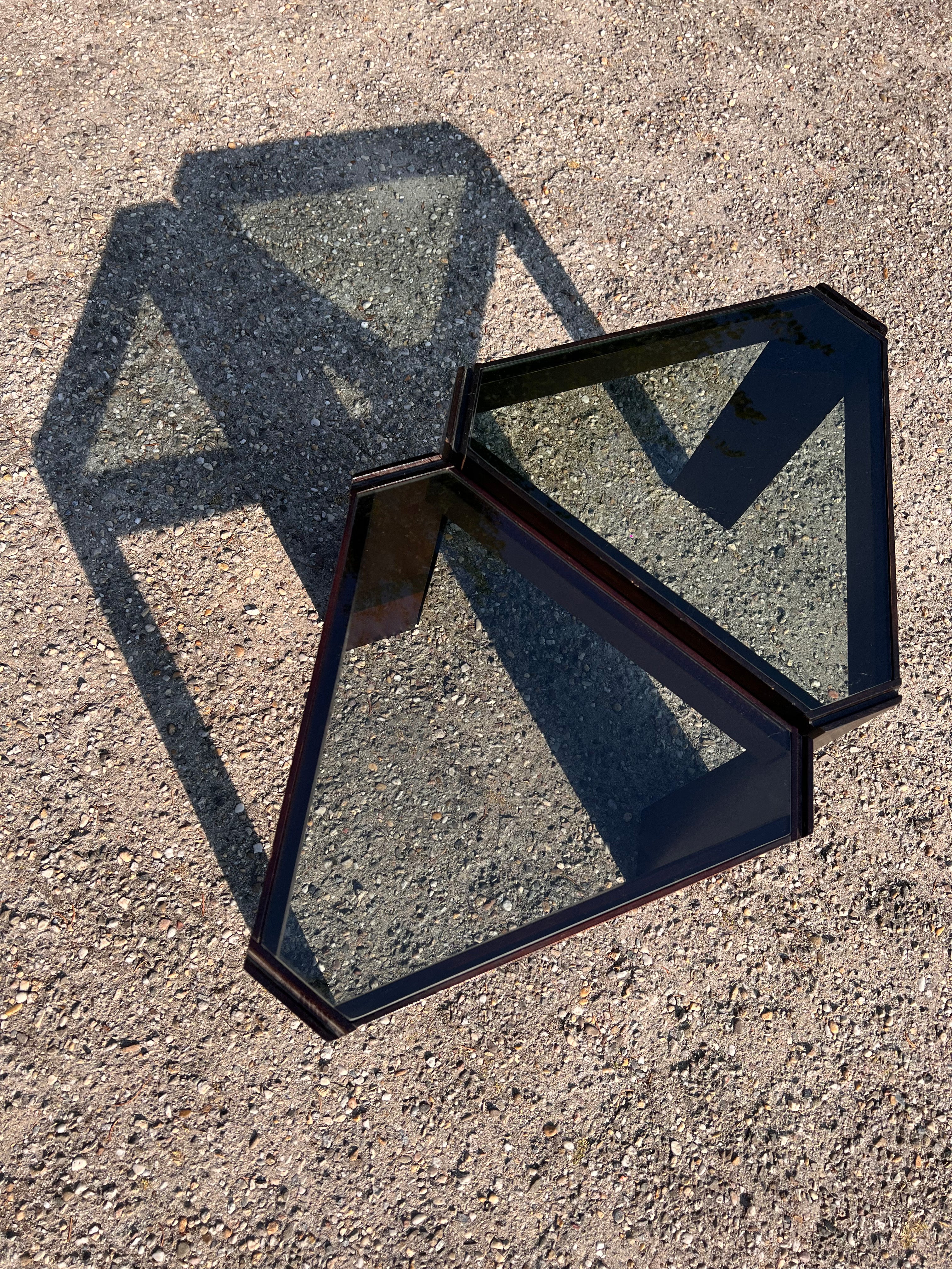 A stunning set of three triangle shaped side tables by Porada Arredi.