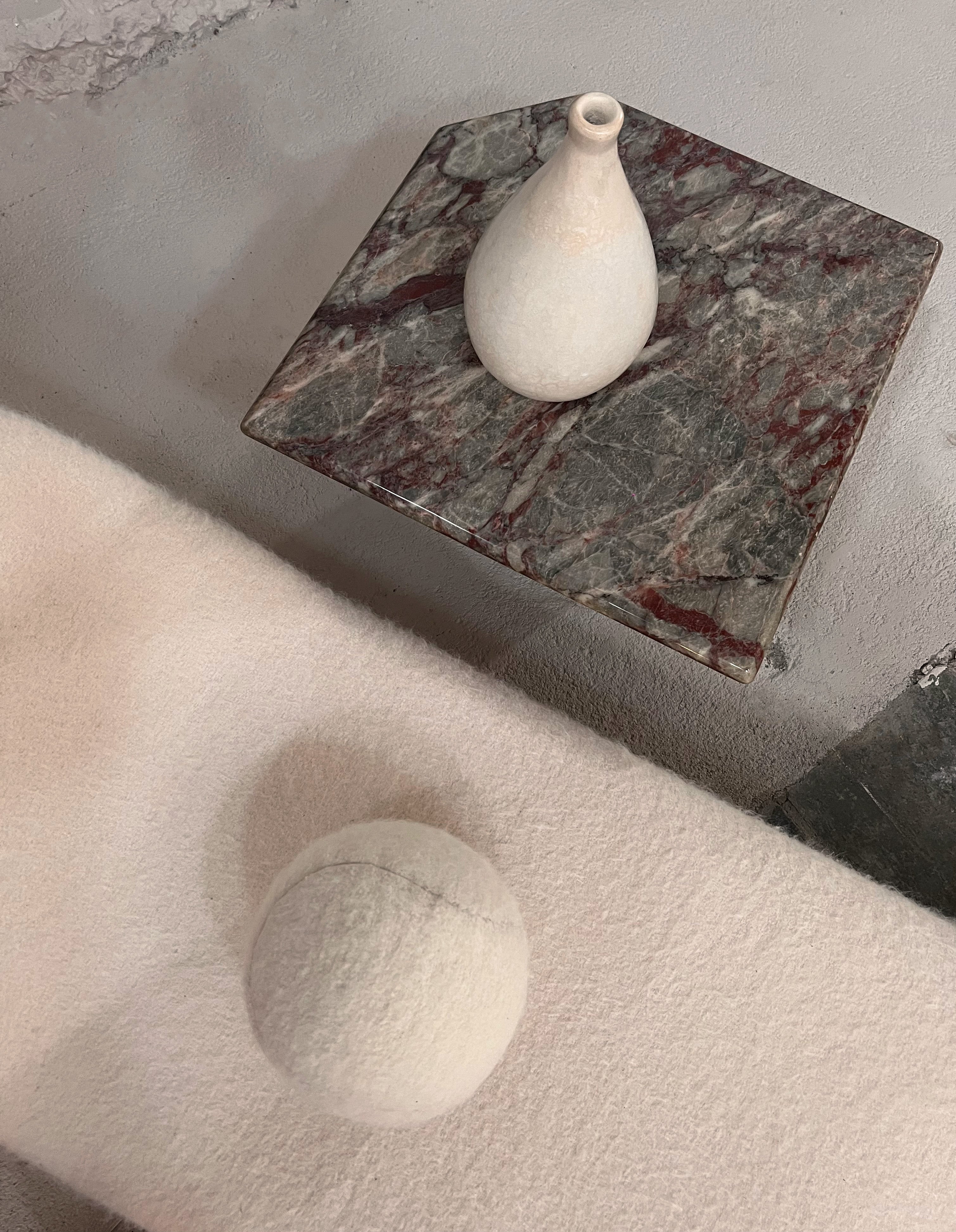 Made from terracotta and coated with Tadelakt. Tadelakt is a waterproof gloss plaster based on a natural hydrated lime. The word Tadelakt is Berber and means ‘to rub in’. The pendant lights are made by hand which gives them a raw and natural texture.