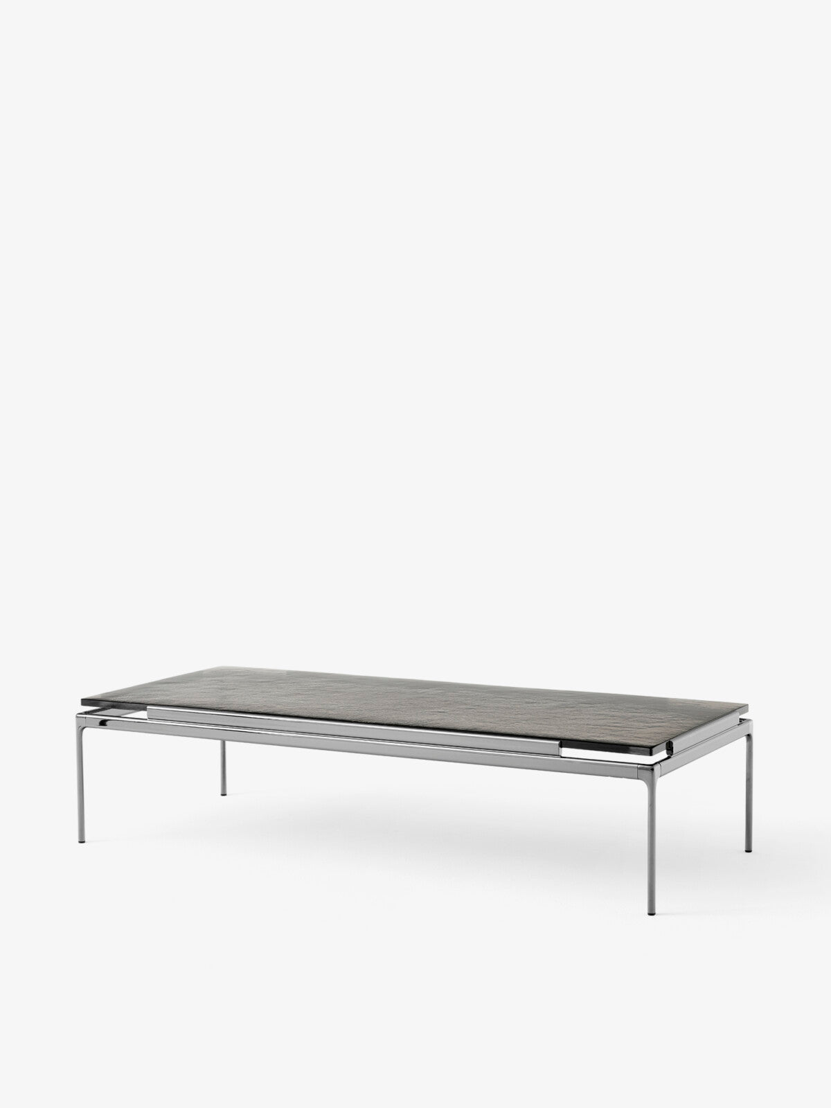 Frame: The legs are made of cast aluminium and the side rails are made of extruded aluminium profiles. Legs and profiles are surface treated with dark chrome.