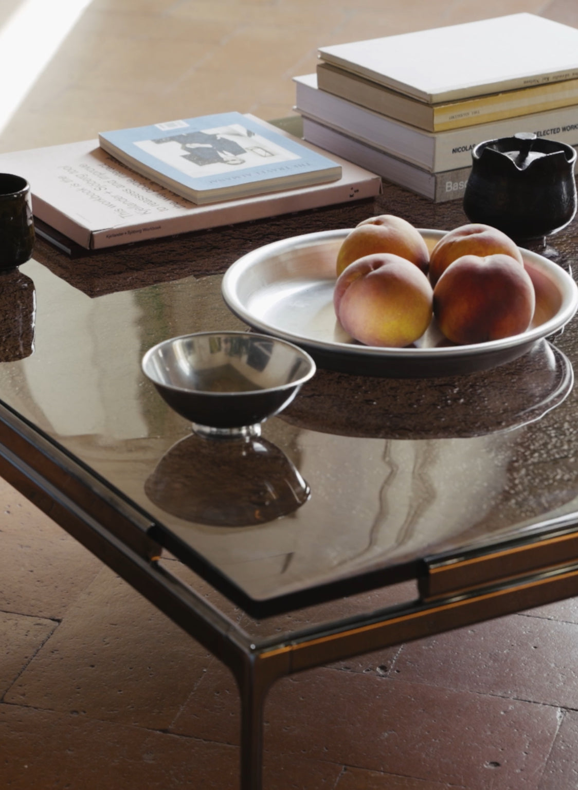 Glass tabletops: Glass is cast into shape and edges are polished for a smooth finish. The colour is then applied by lacquering the under side of the glass. The smoked glass tabletops are unique due to the casting process and thickness may vary from 1-5mm per piece.