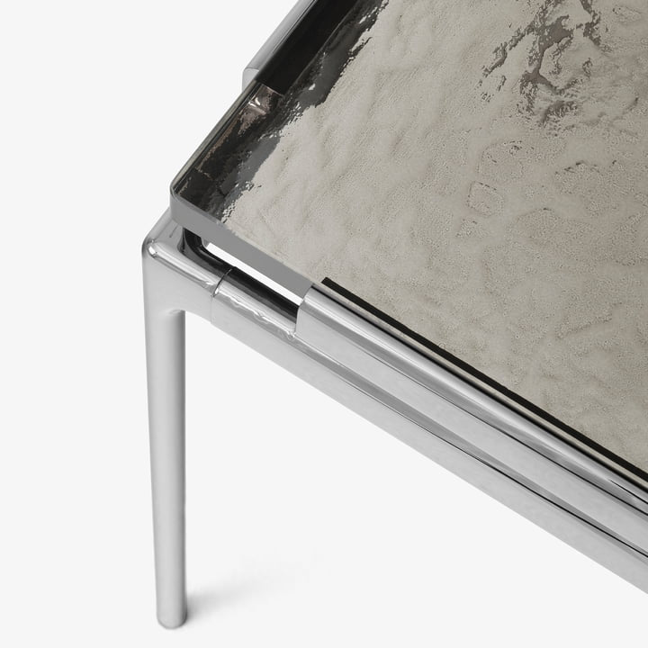 Sett is a coffeetable showcasing the innate beauty of irregular glass top combined with darkchrome base. Inspired by a jewellery technique, where precious gems are inlaid and precisely ‘set’ into a frame.