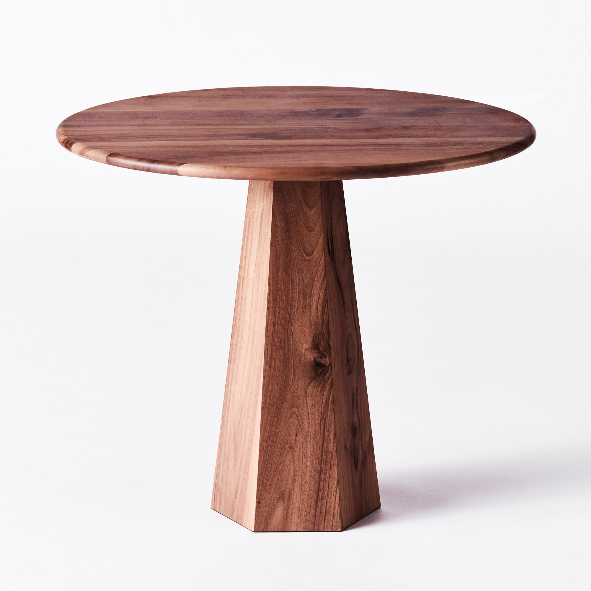 Hexagon Dining Table Oak is a modernist dining table with a hexagonal shaped base and a round table top. The table is made of solid oak and is available in two sizes, 90 and 120 cm in diameter.