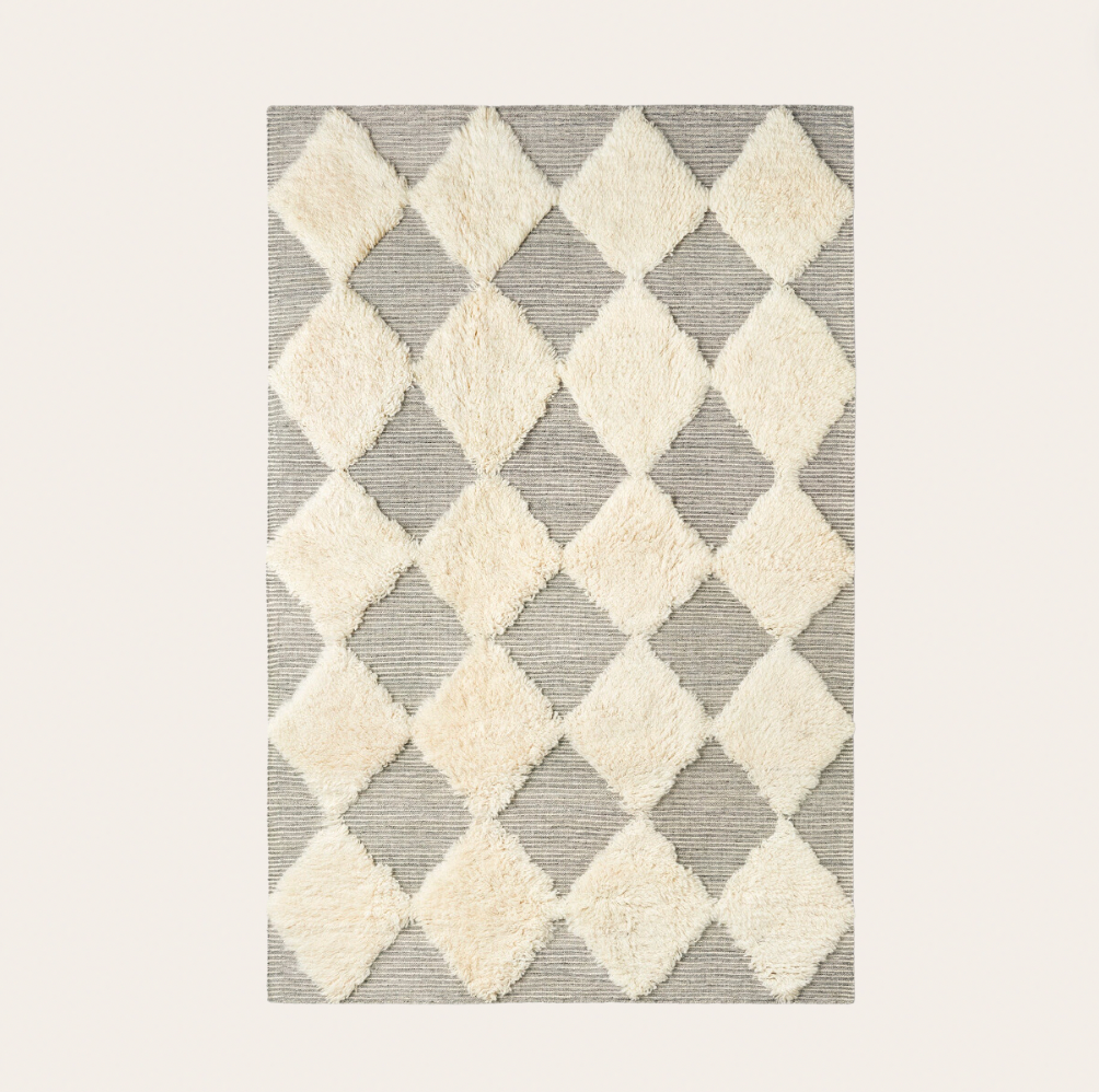 Expertly hand-woven with 100% wool, the Chess Rya Grey Rug from Dusty Deco is the perfect addition to any space. Its striking checker pattern, featuring flat weaved grey squares and shaggy white fields, adds a touch of visual interest. Available in two sizes.