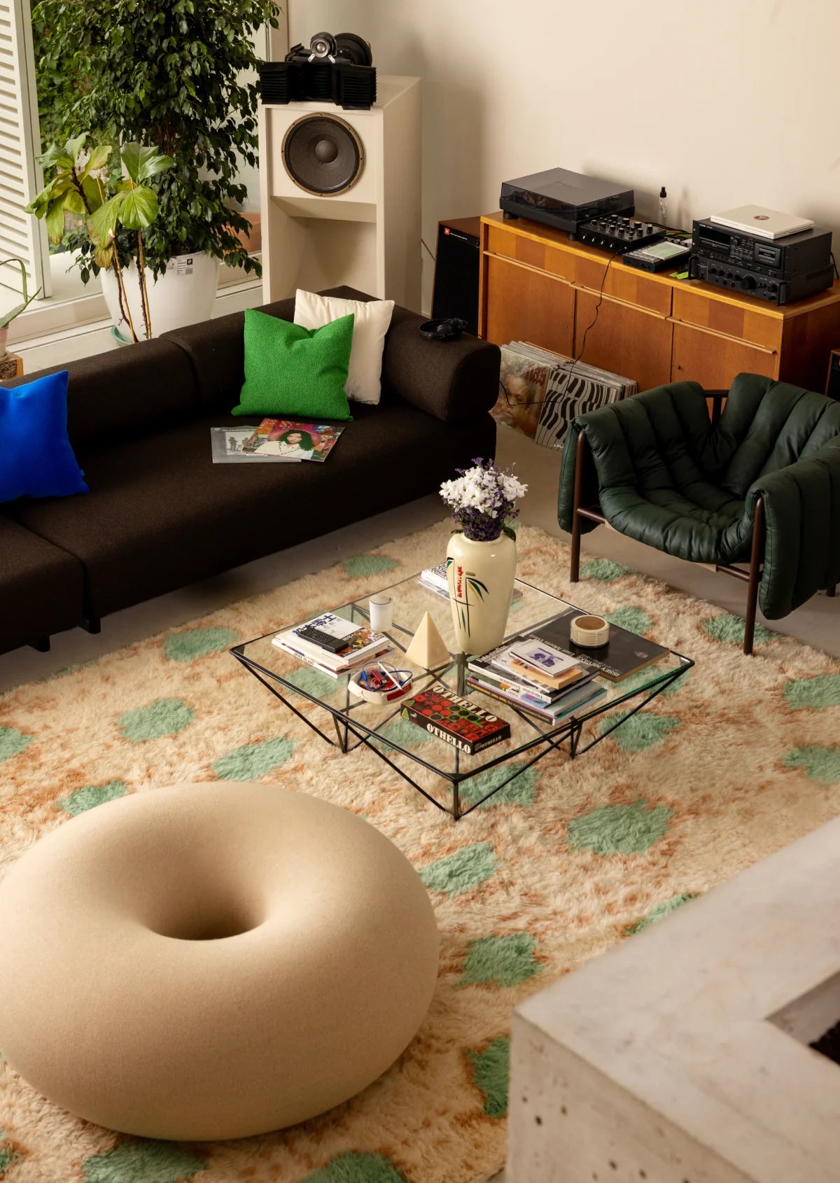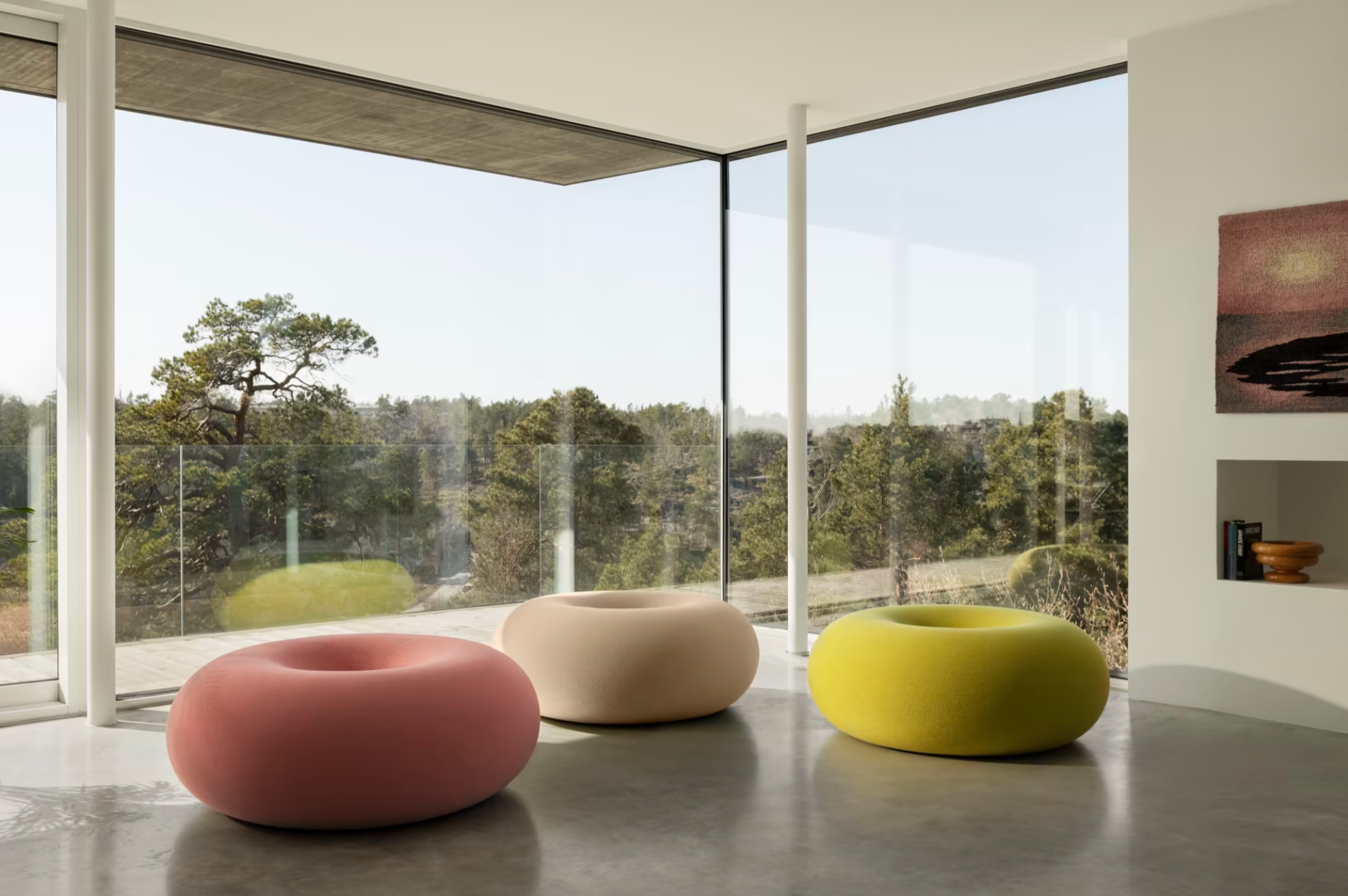 The donut-shaped Boa Pouf for HEM by Sabine Marcelis is perfectly sculptural; a bold graphic form that interrupts interior landscapes with its faultless chunky geometry. This piece of upholstered occasional furniture is rounded and soft, encased in a seamless outer layer that gives it an air-brushed finish: The smooth shape-knit textile that covers the Boa Pouf is a milestone in technologically innovative furniture making. Boa Pouf is as perfect for perching on, propping up feet, lounging against, as it is for making a sculptural statement and is the ideal expression of designer Sabine Marcelis, whose work is characterised by resonating clear, single, notes of absolute material, textile and colour.