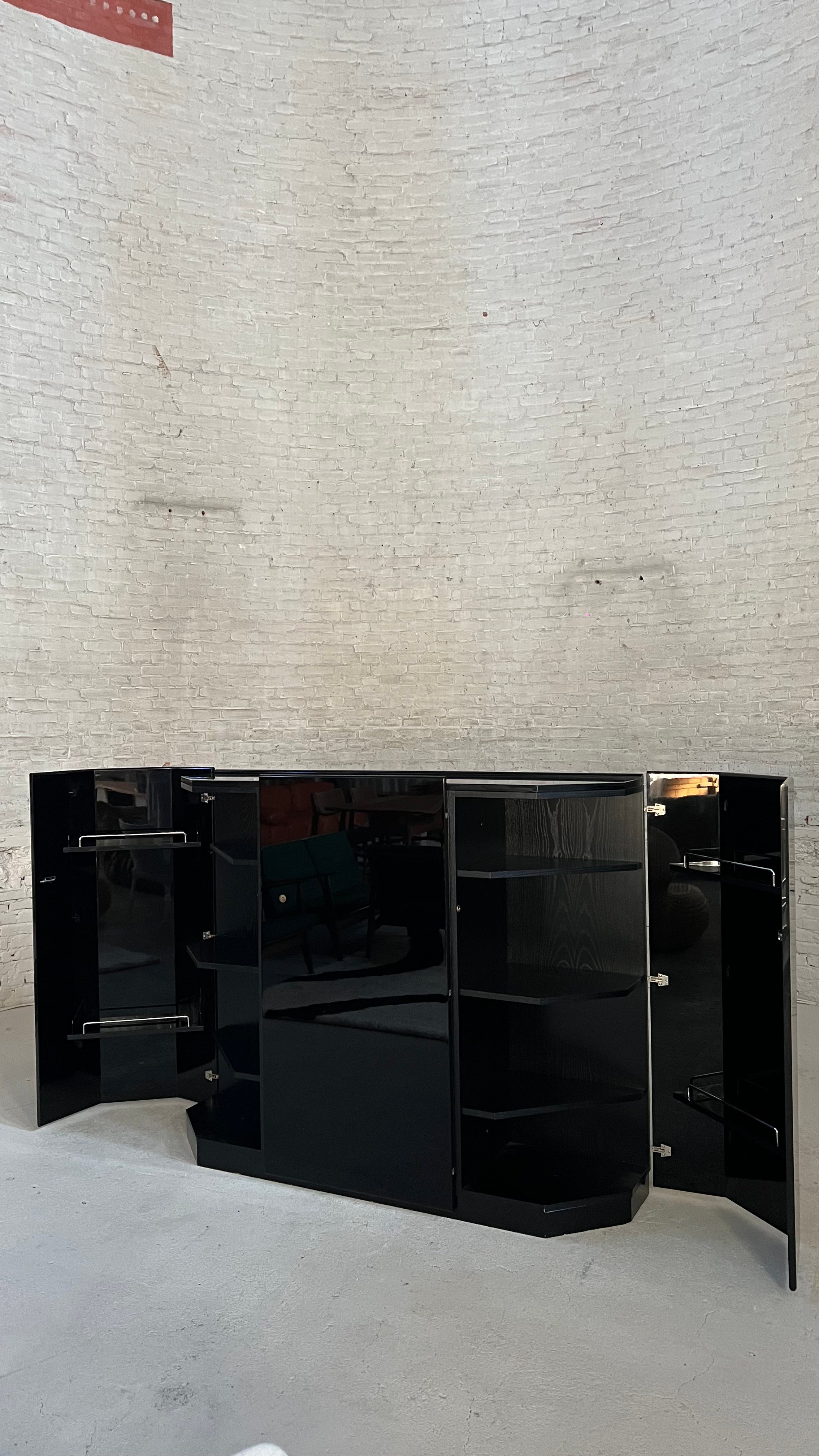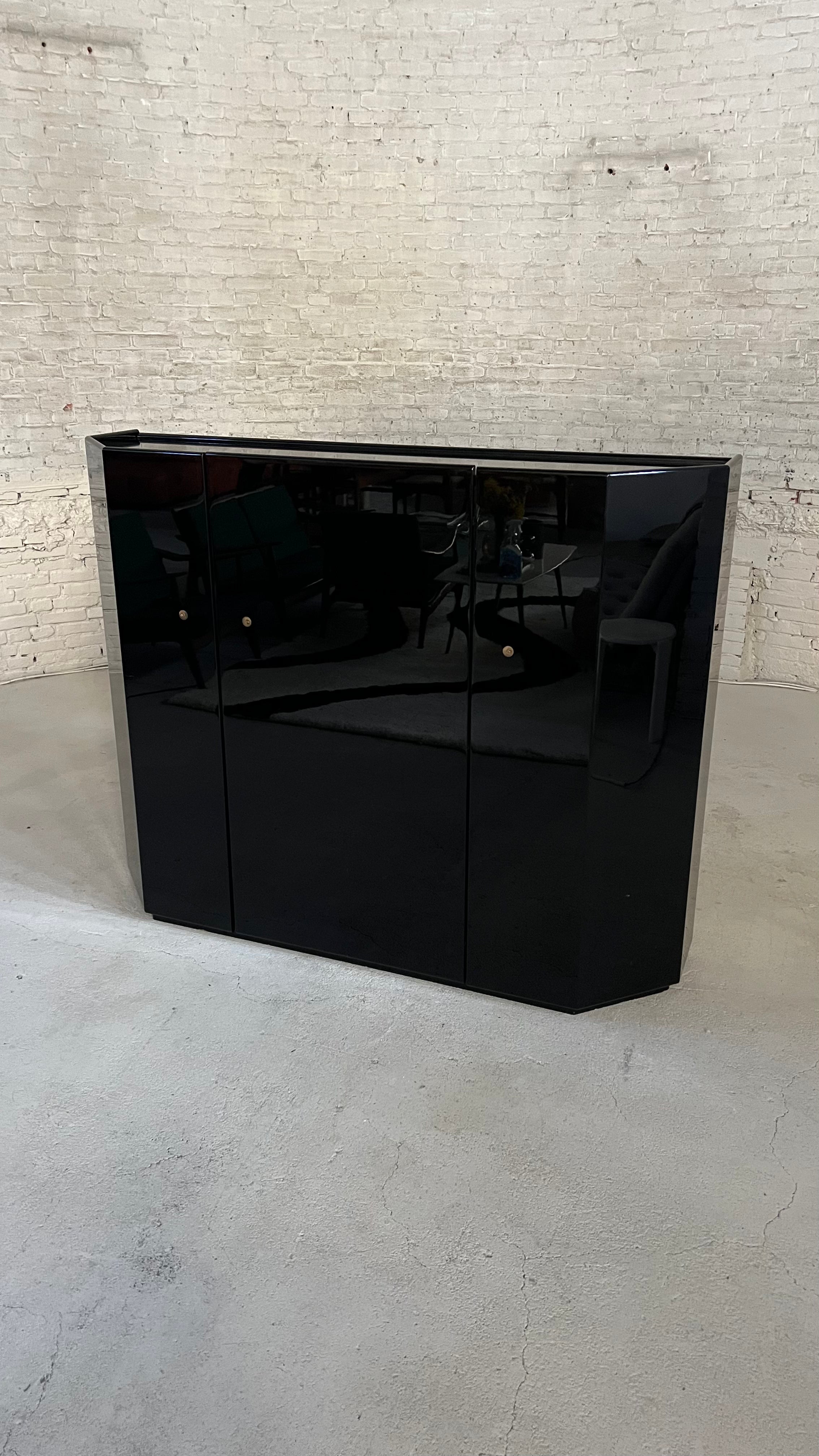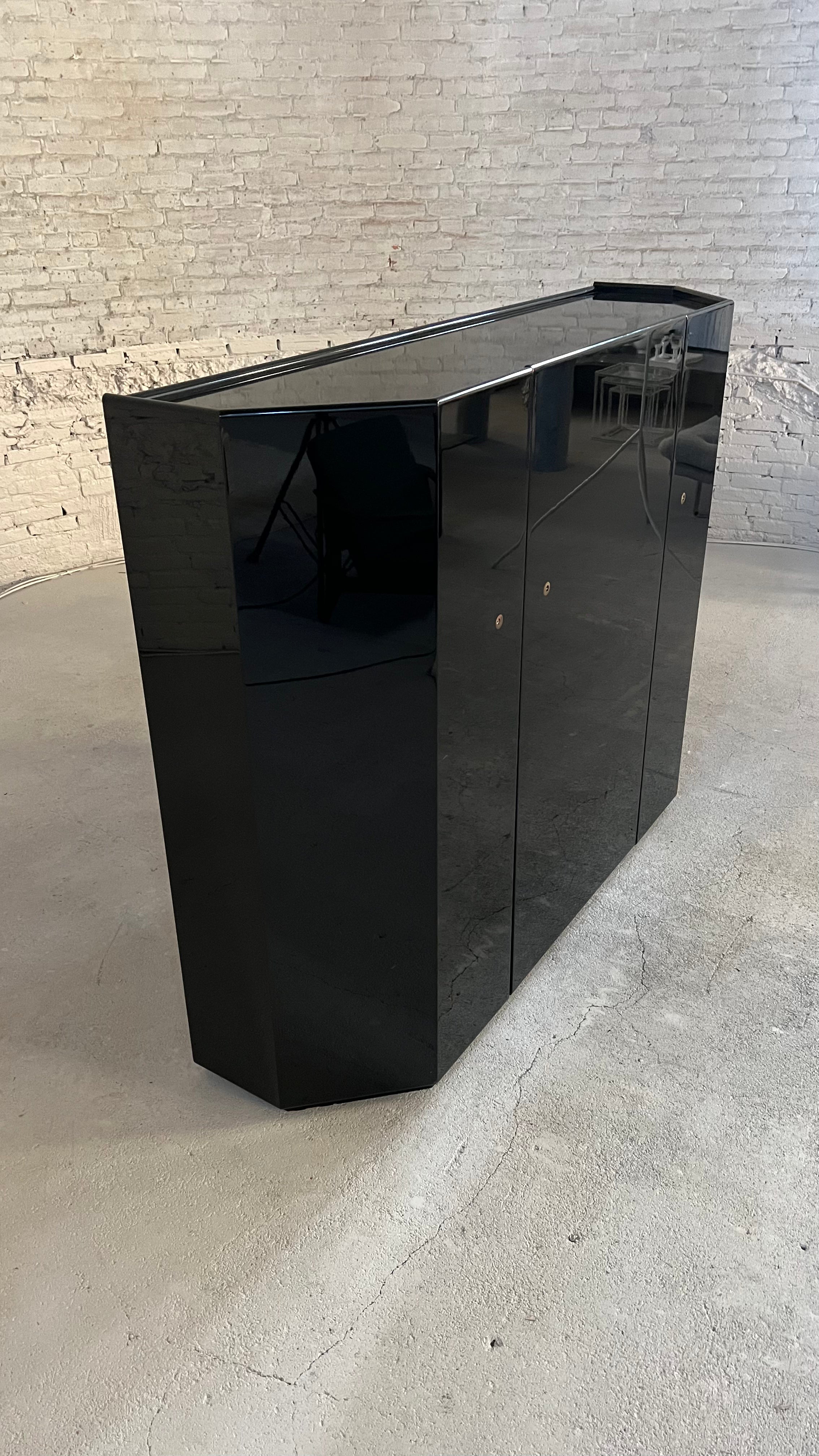 Especially admired for its architectural persona and for its versatility of use in various settings, Bramante is a piece of lacquered furniture that, with its pure, geometric shapes, reveals all of its artisanal sophistication. The Cabinet was produced between 2013-2019 and is in good condition consistent with age and use.