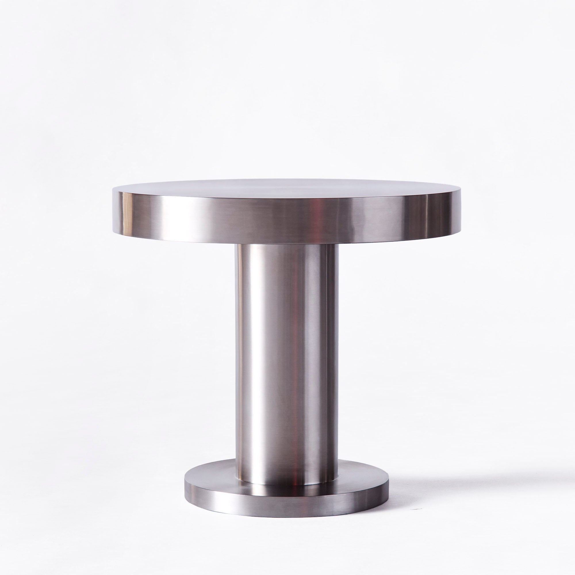 Crafted from polished stainless steel, this statement table features a round shape and compact size, making it perfect for living room corners or as a chic surface for placing decorative items or a lamp.