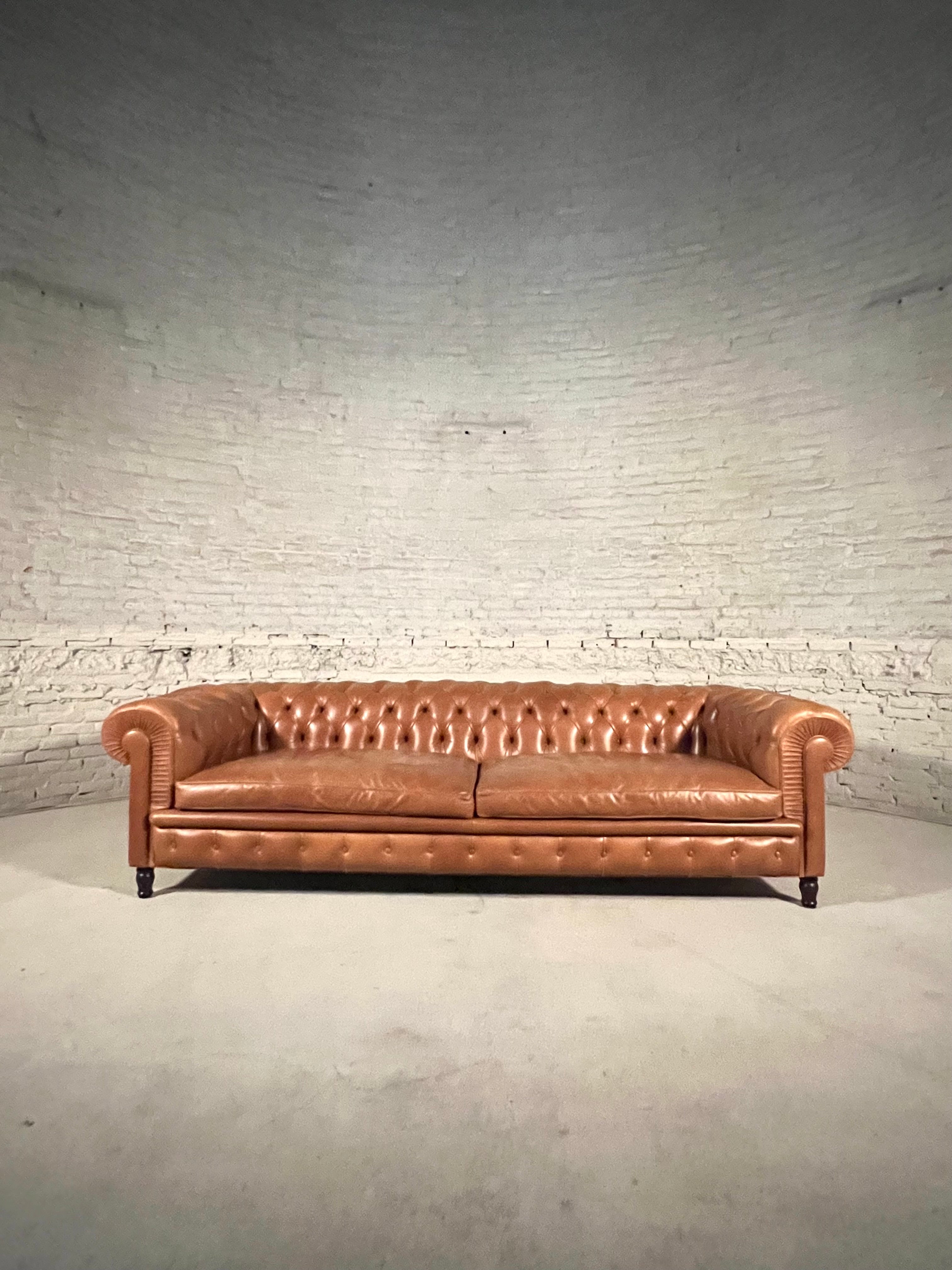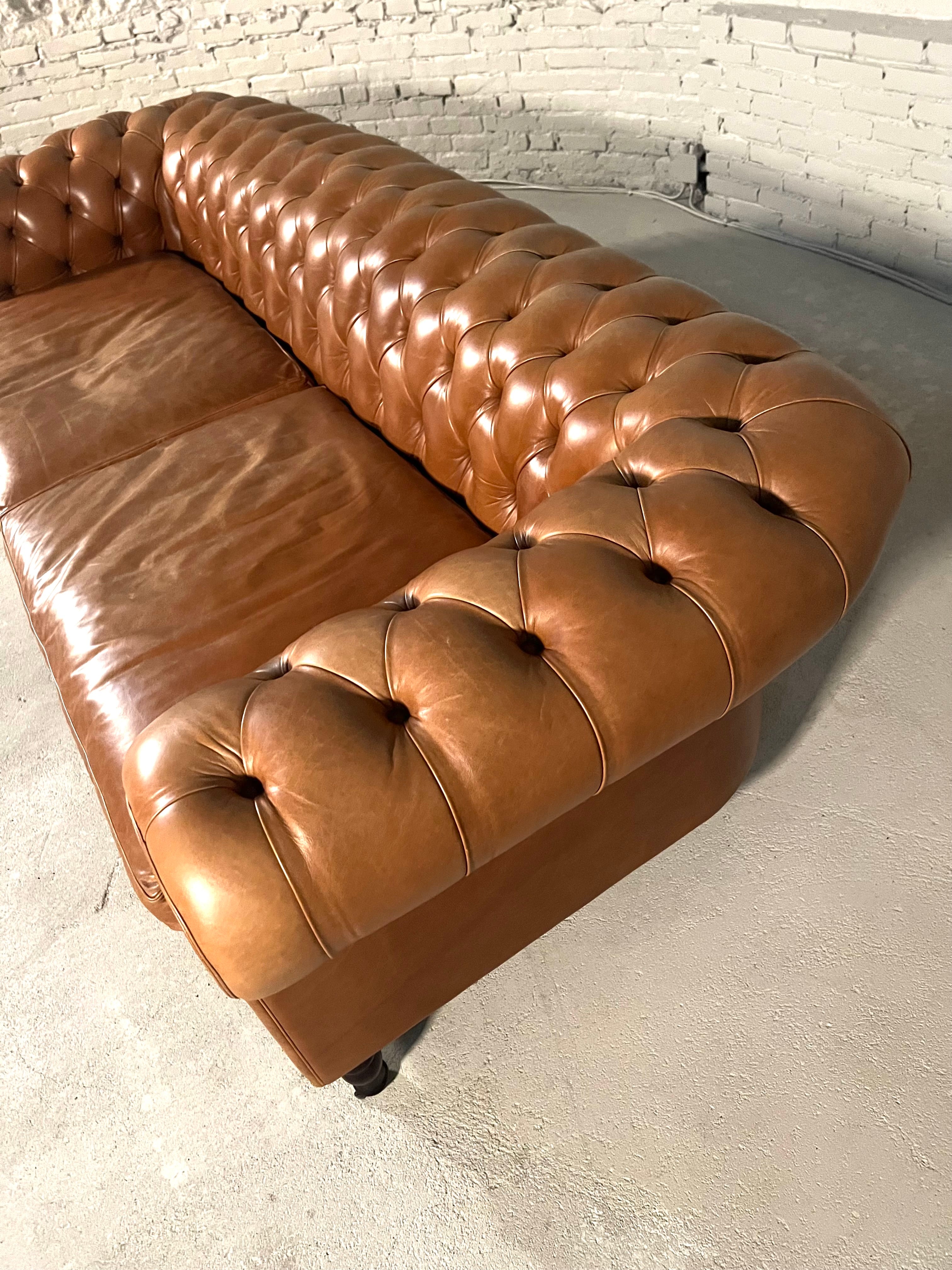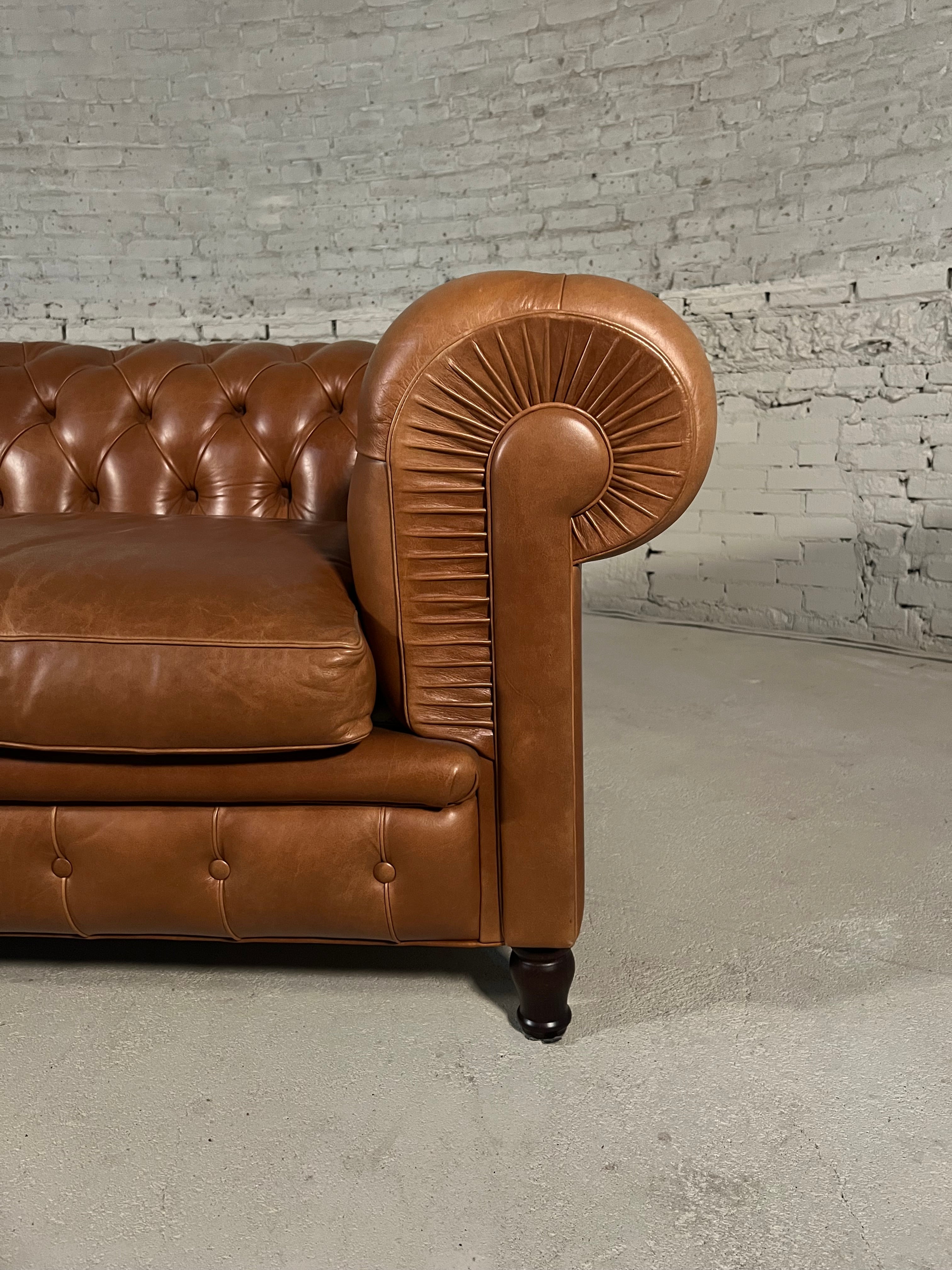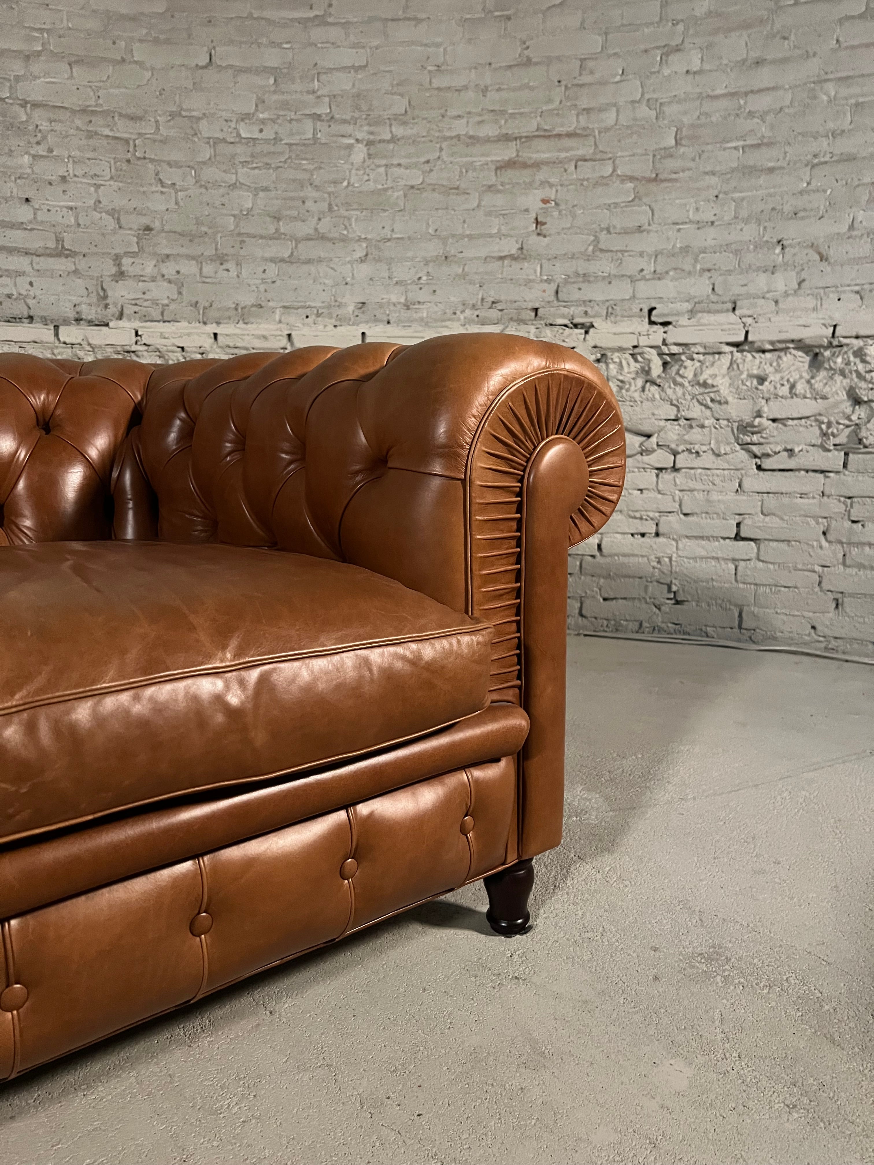 The Chester One sofa maintains the features of the classic model designed by Renzo Frau: the famous capitonné processing, the curved armrest, the series of pins that refines the Pelle Frau® leather upholstery.