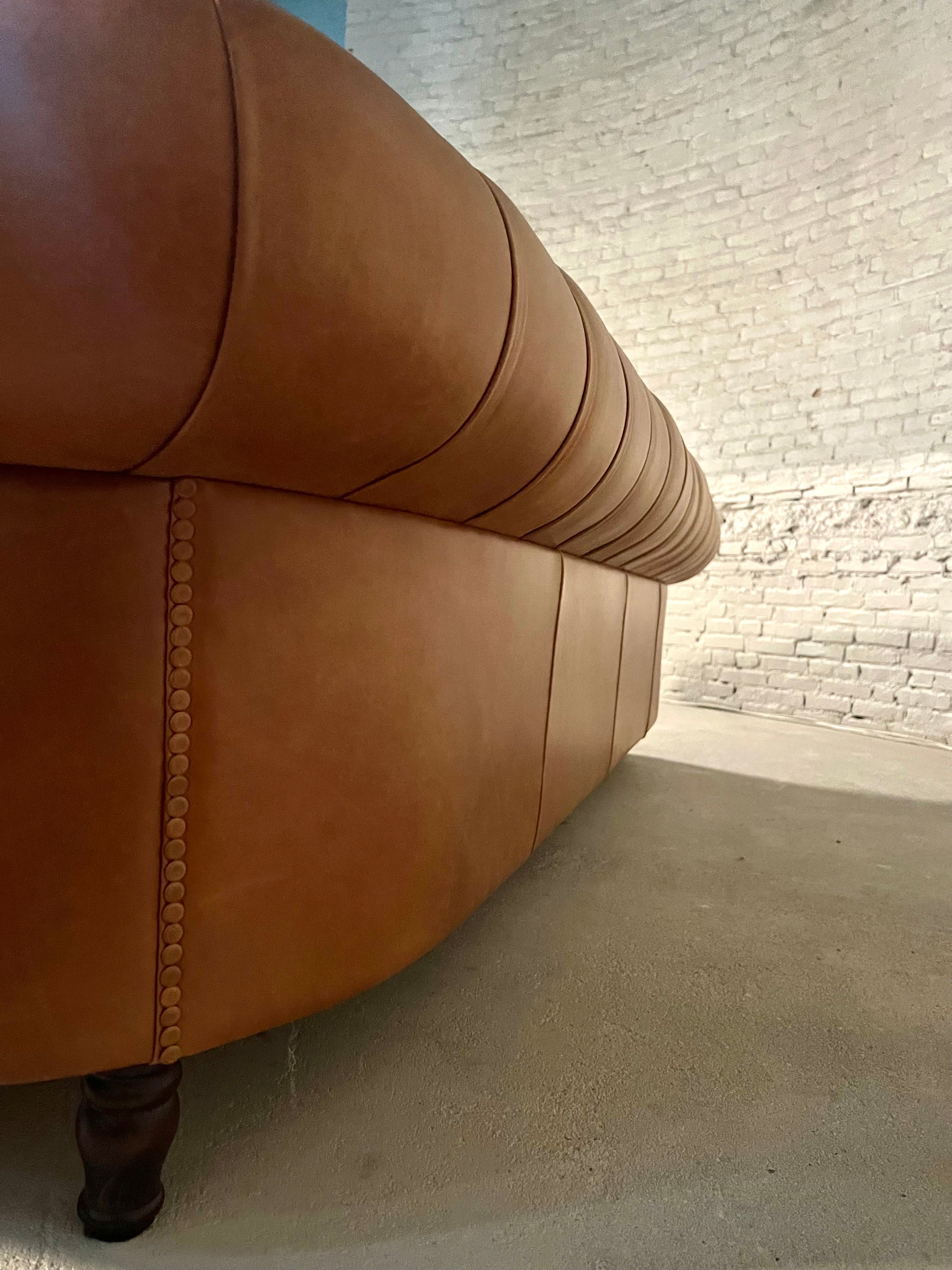 A prestigious and exclusive reissue of a grand historic. The four-seater sofa, an elegant and generously-proportioned reinterpretation of one of the most iconic pieces from the Poltrona Frau Archives, the artisan mastery and zest for perfection, which have been the hallmark of Poltrona Frau since its beginnings, can be seen in the capitonné effect workmanship and in the series of tacks that give a finishing touch to the leather on the backs of the seats.