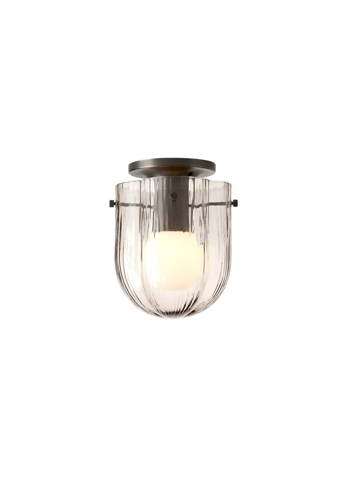 Available as a Table Lamp, Ceiling Lamp, and Pendant, each piece can be configured with a Smoke shade translucent and revealing the lamp’s inner structure or Coral, with a sandblasted interior that creates a soft, clouded glow.