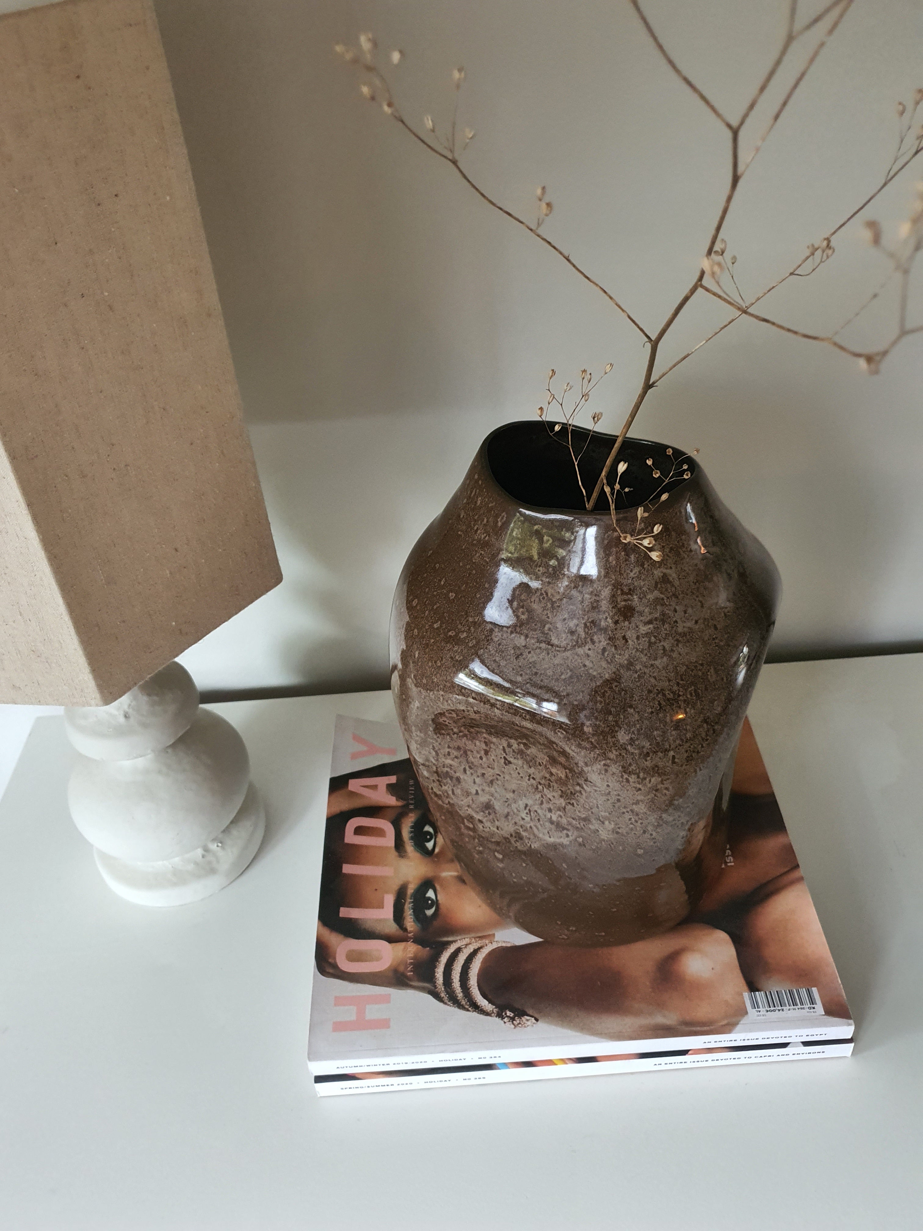 Ceramic bulb vase in a brownish tone. Each vase has its own unique character since they are handmade out of clay and the vases are finished with a silicon coating. Available in 33 cm and 37 cm height.