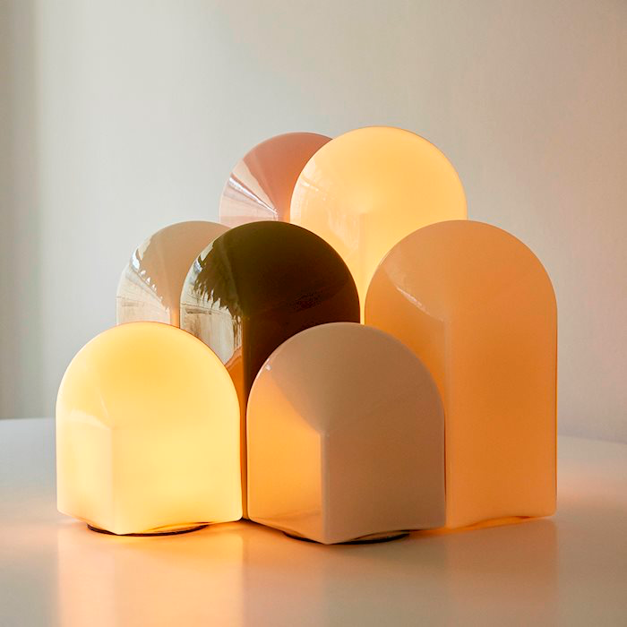 Inspired by the desire to create an ambient light source with a sculptural quality, Danish husband-and-wife designers Viola Heyn-Johnsen and Jonas Trampedach have created the Parade Lamp series. Consisting of a square base and arched top in coloured glass, the geometric shape causes the expression to change depending on whichever angle the lamp is turned. The carefully selected sizes and colours complement each other in height, tone and temperature, creating a cohesive effect that forms an interlinking pattern when multiple lamps are viewed together. Equally appealing as a collection of illuminating sculptures, a single light source on a bedside cabinet or displayed with other ornaments without the light switched on, Parade combines functionality with aesthetics to create a versatile and unique lamp. The custom, integrated LED light source, which can be replaced if required, has an inline step-dimmer that allows the light output to be adjusted to different settings.