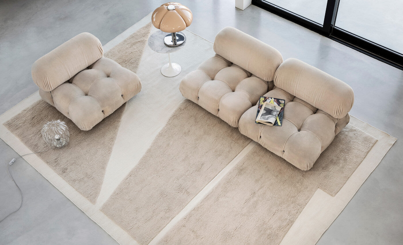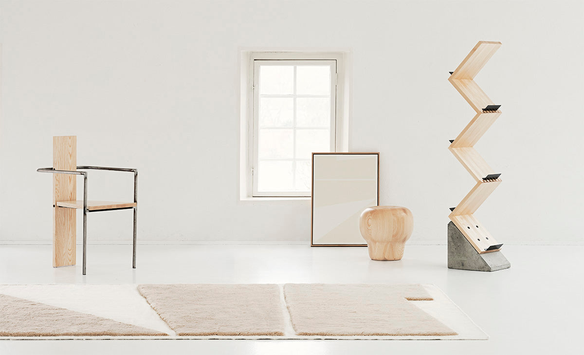 Danish contemporary artist Carsten Beck Nielsen ‘paints’ geometric shapes with a shaggy hand-knotted wool pile across a flat-woven wool canvas.The angular shapes are inspired by different geometric and mathematical forms. Crafted from New Zealand wool for an irresistibly soft and durable texture and a timeless statement rug that last.