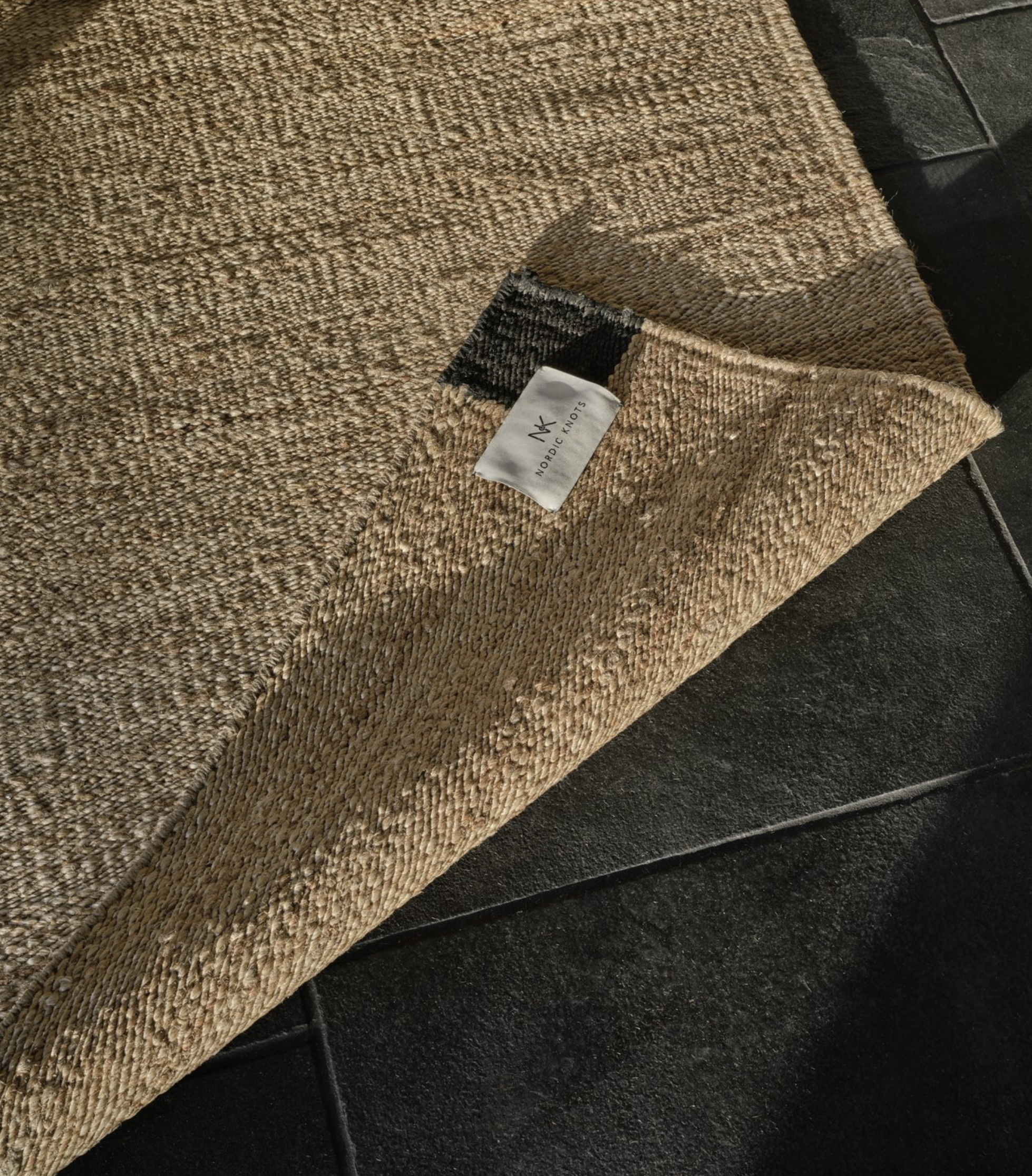 The modern rustic design Jute comes in a range of graphic patterns and uplifting color accents, which have been handcrafted using traditionally woven all-natural plant fibers. The enduring material features a rugged, brown melange with characteristic irregularities, making each piece unique.