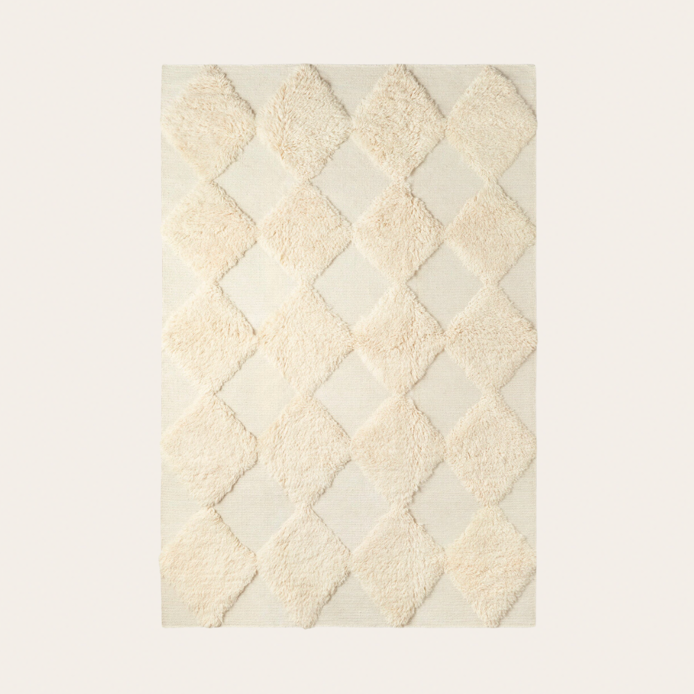 Expertly crafted with 100% wool, Chess Rya White Rug adds depth and texture to any space. Its checkerboard pattern creates a unique high and low effect, while the tone-on-tone design brings a touch of refinement. Available in two sizes and a sleek grey version.