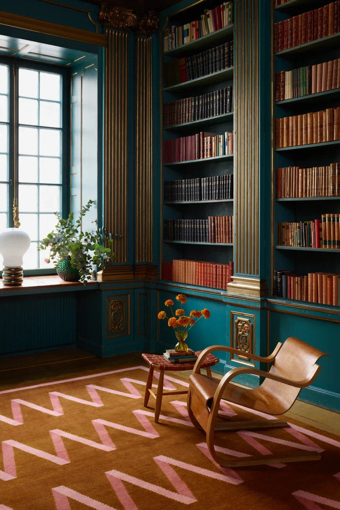 A collection of hand-knotted rugs designed by London-based design duo Duncan Campbell and Charlotte Rey with a colourful and art deco-influenced sensibility and the floral motifs of Gustavian style, the neoclassicism of the North.