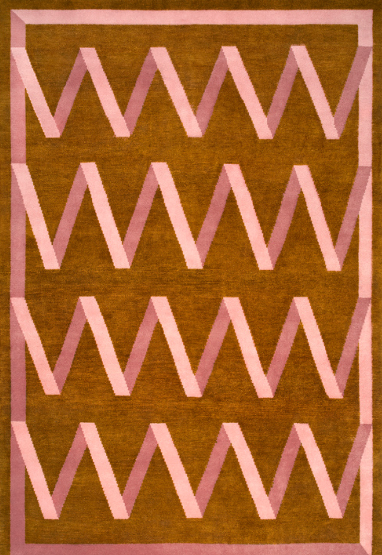 Folding Ribbon is a modern interpretation of the ribbons and swags that appear in late 18th-century furniture of the Gustavian style. In raspberry pink and amber, this 3D trompe l’oeil pattern looks strikingly modern despite its roots in a 250-year-old aesthetic.