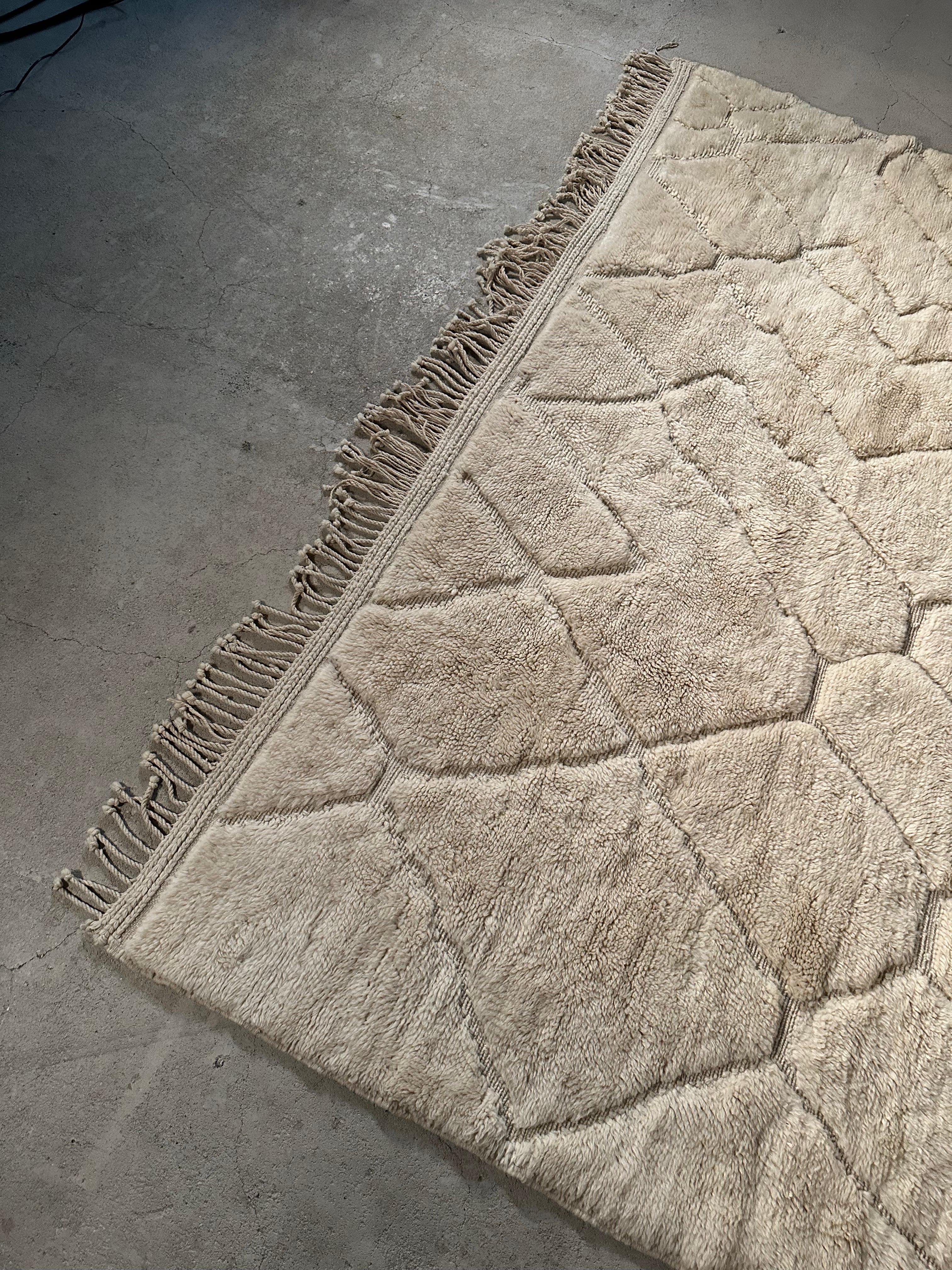 Introducing the Marmoucha abstract rug, uniquely-crafted to bring luxury and warmth into any room. Its wool is specially treated, sun-baked and lanolined, giving it an extra dose of velvet touch. And the best part? Its warp and weft create an unmatched pattern that is sure to make any interior shine!