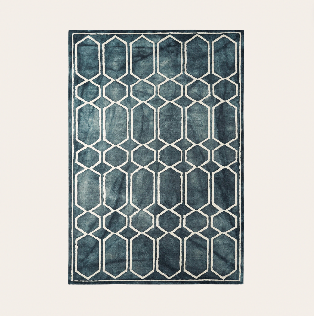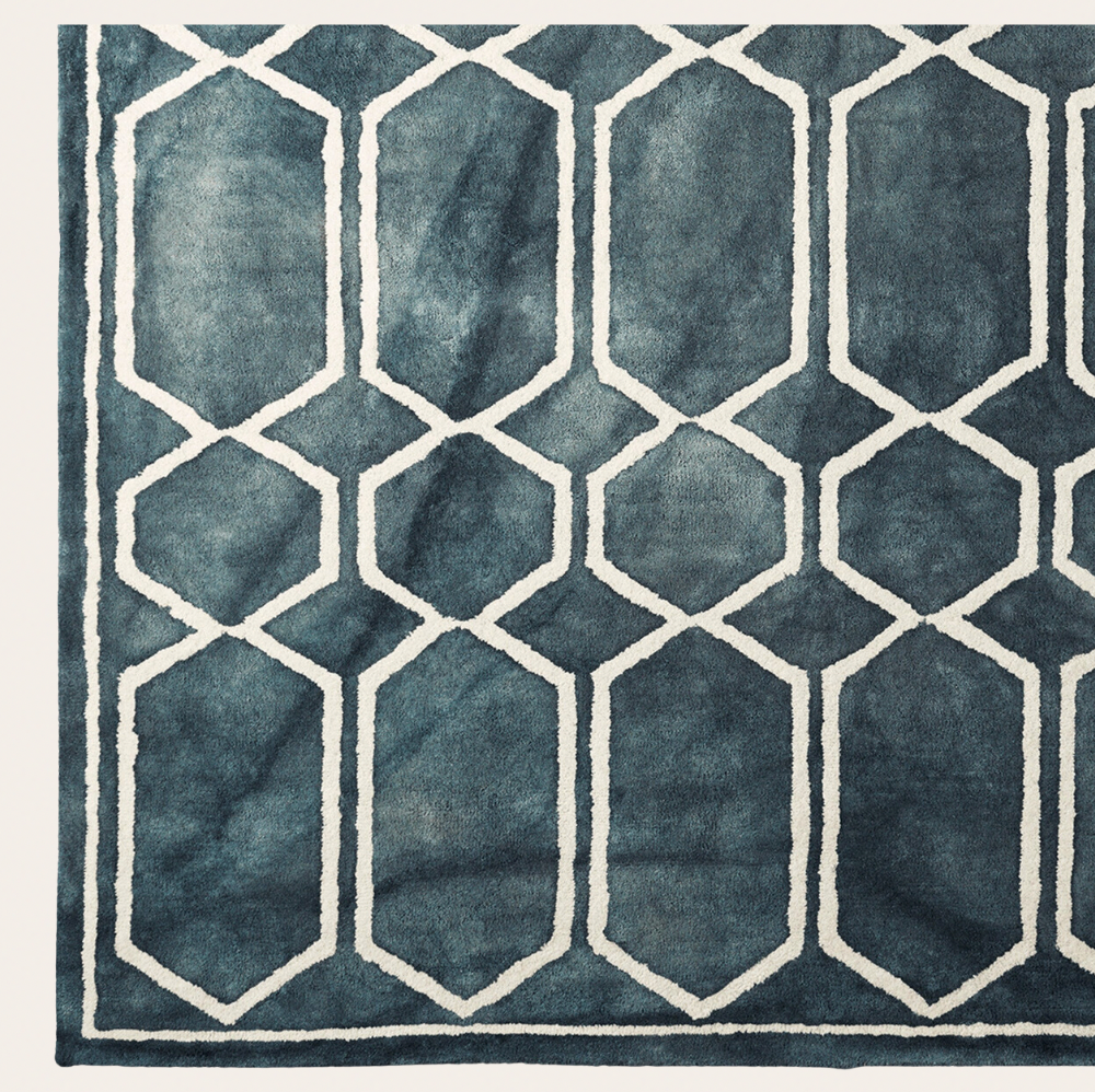 Introducing the Tie Dye Graphite Ink Rug - a hand-tufted 100% wool rug with a unique dip dye technique. The art deco and Moroccan Berber influenced pattern adds a touch of contrast to the dark grey base, with varying hues and intensities for each individual rug. Available in three sizes and three colors (Beige, Graphite Ink, and Sage Green). Individually dyed for a truly one-of-a-kind piece.