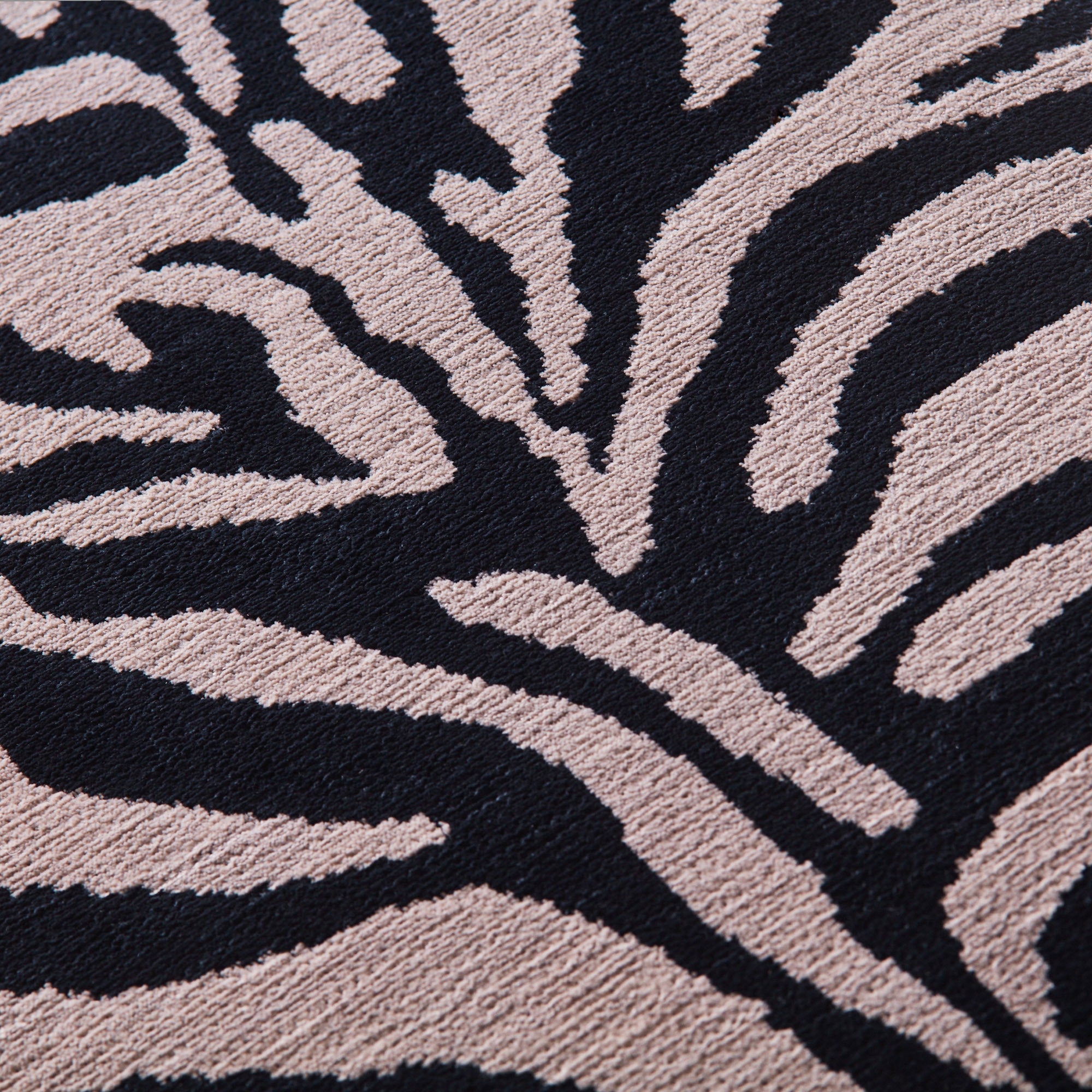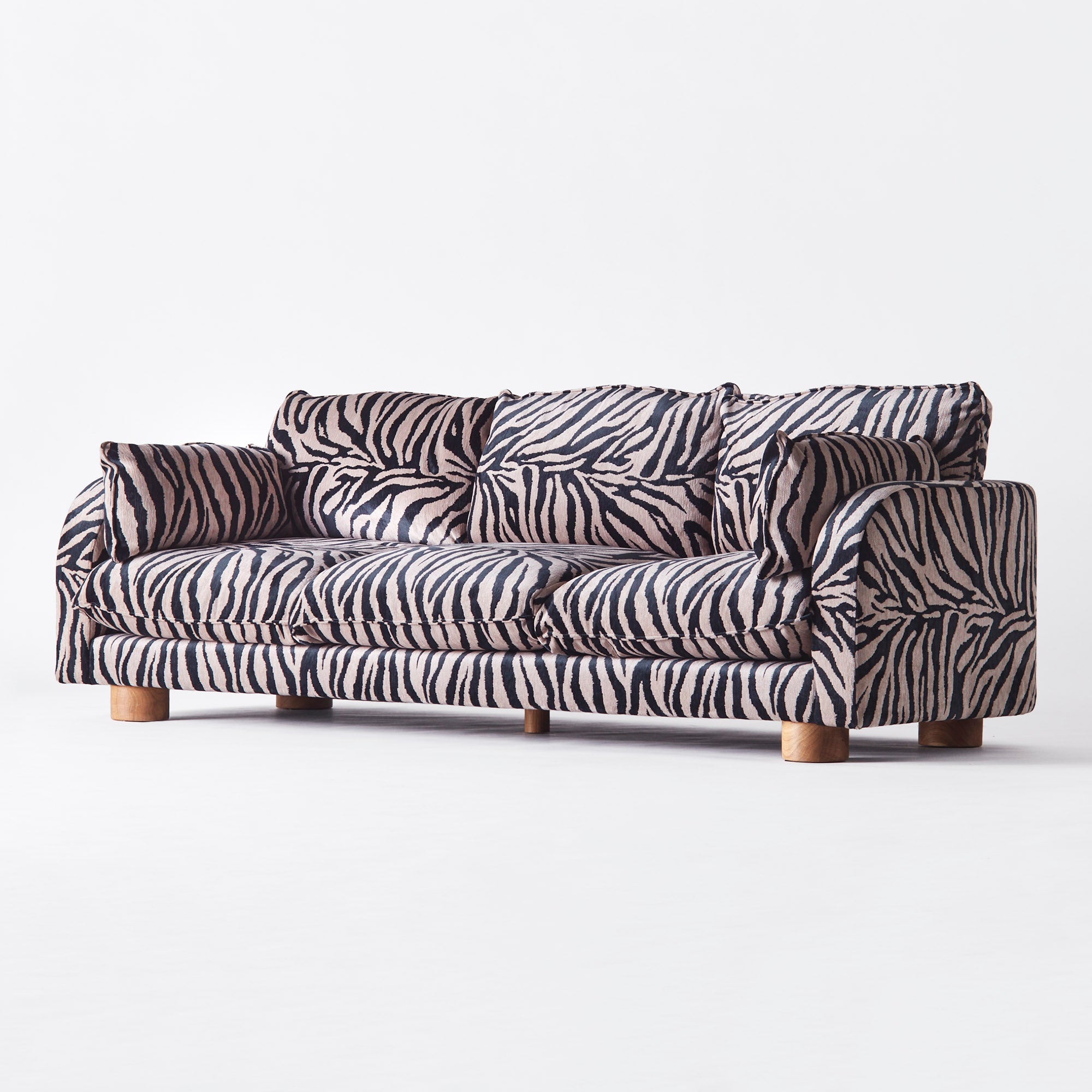 Miles Sofa Zebra is a 3-seater sofa with a frame made of solid spruce, plywood, and a filling of duck down, silicone marbles, and foam. The sofa is upholstered in a zebra patterned fabric from Limonta. In addition to this sofa, the Miles series also includes an armchair and a love seat.