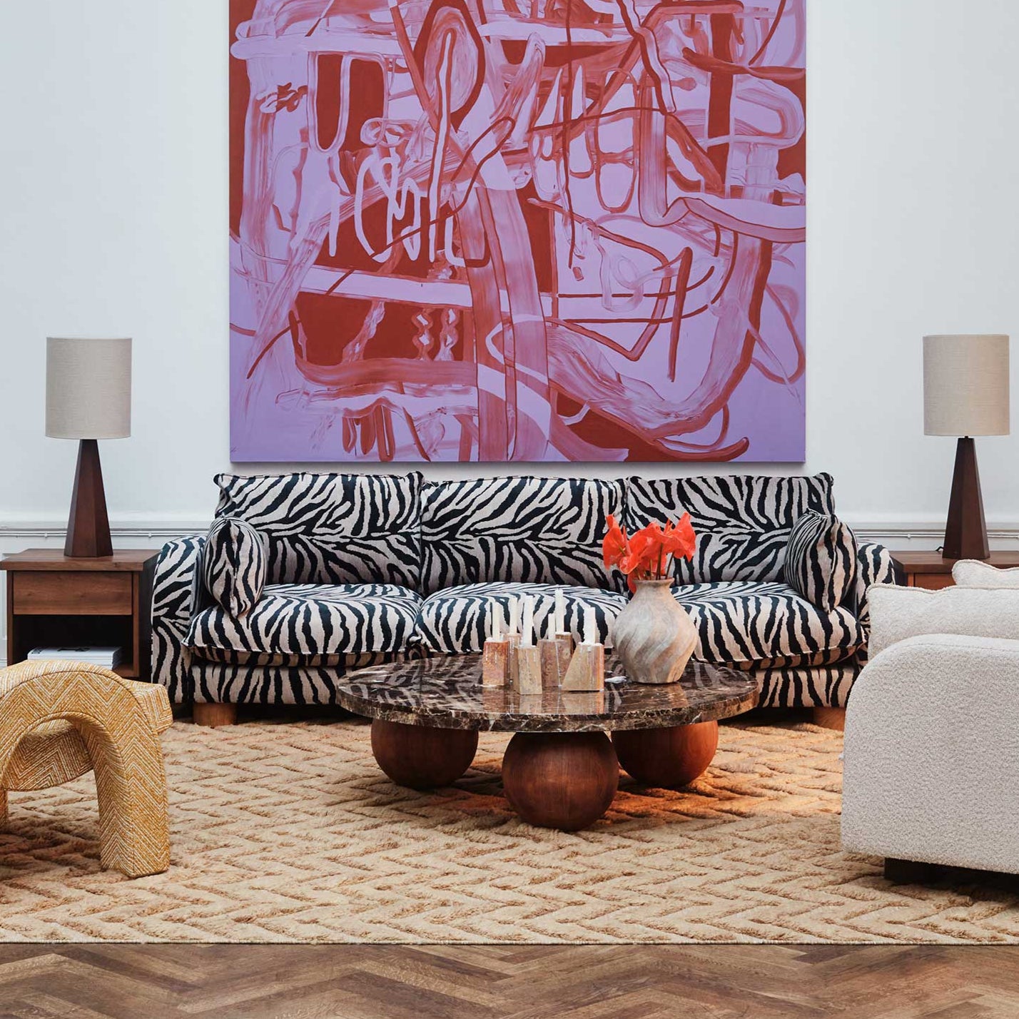 Miles Sofa Zebra was born through a collaboration with the Stockholm-based architectural firm MER Arkitekter. The inspiration for the sofa came from the golden era of Swedish design, the so-called Swedish Grace style. With round shapes, soft cushions, and cylindrical legs, the result is a perfect symbiosis between Swedish 1920s design and Dusty Deco's contemporary style.
