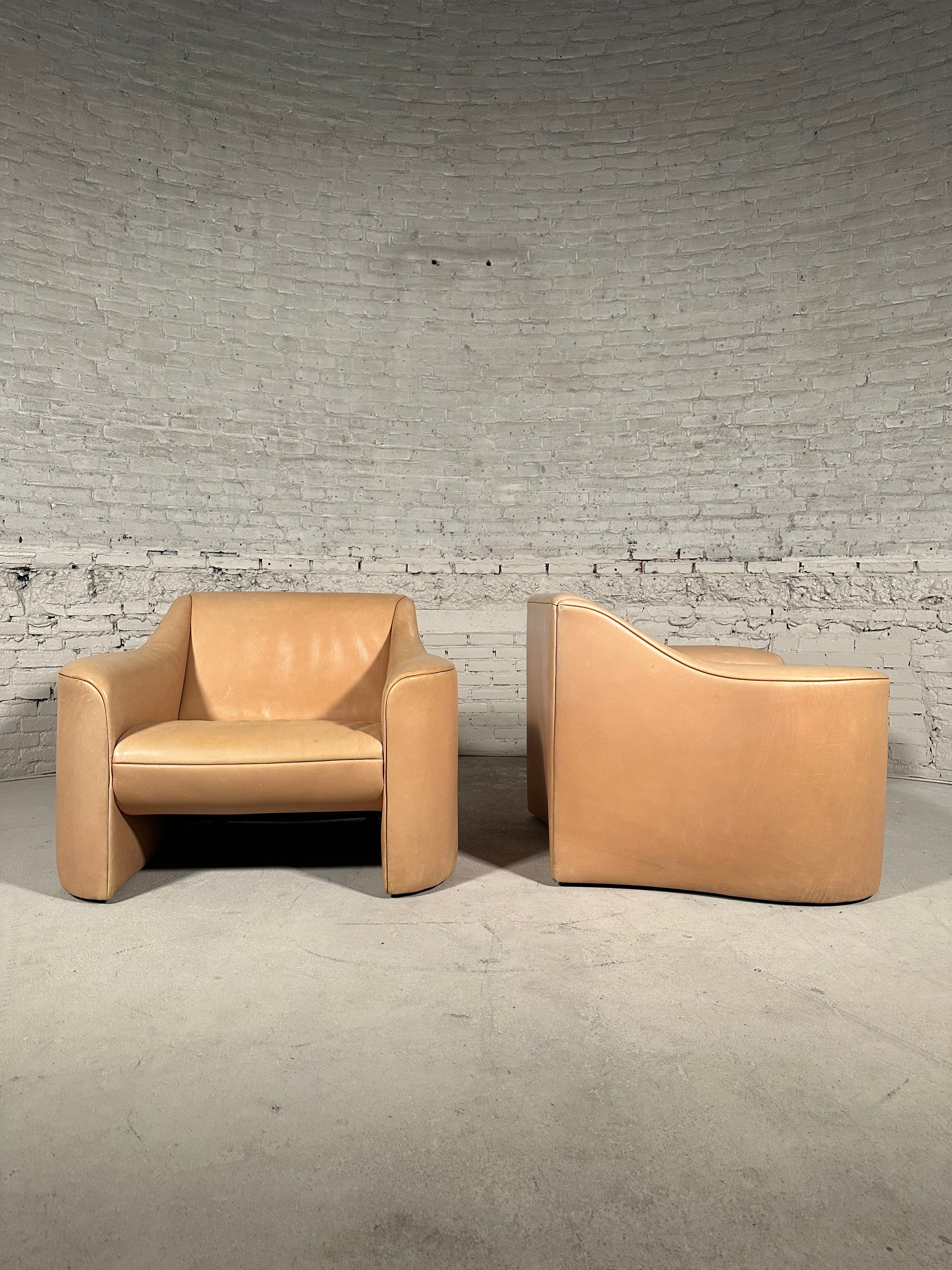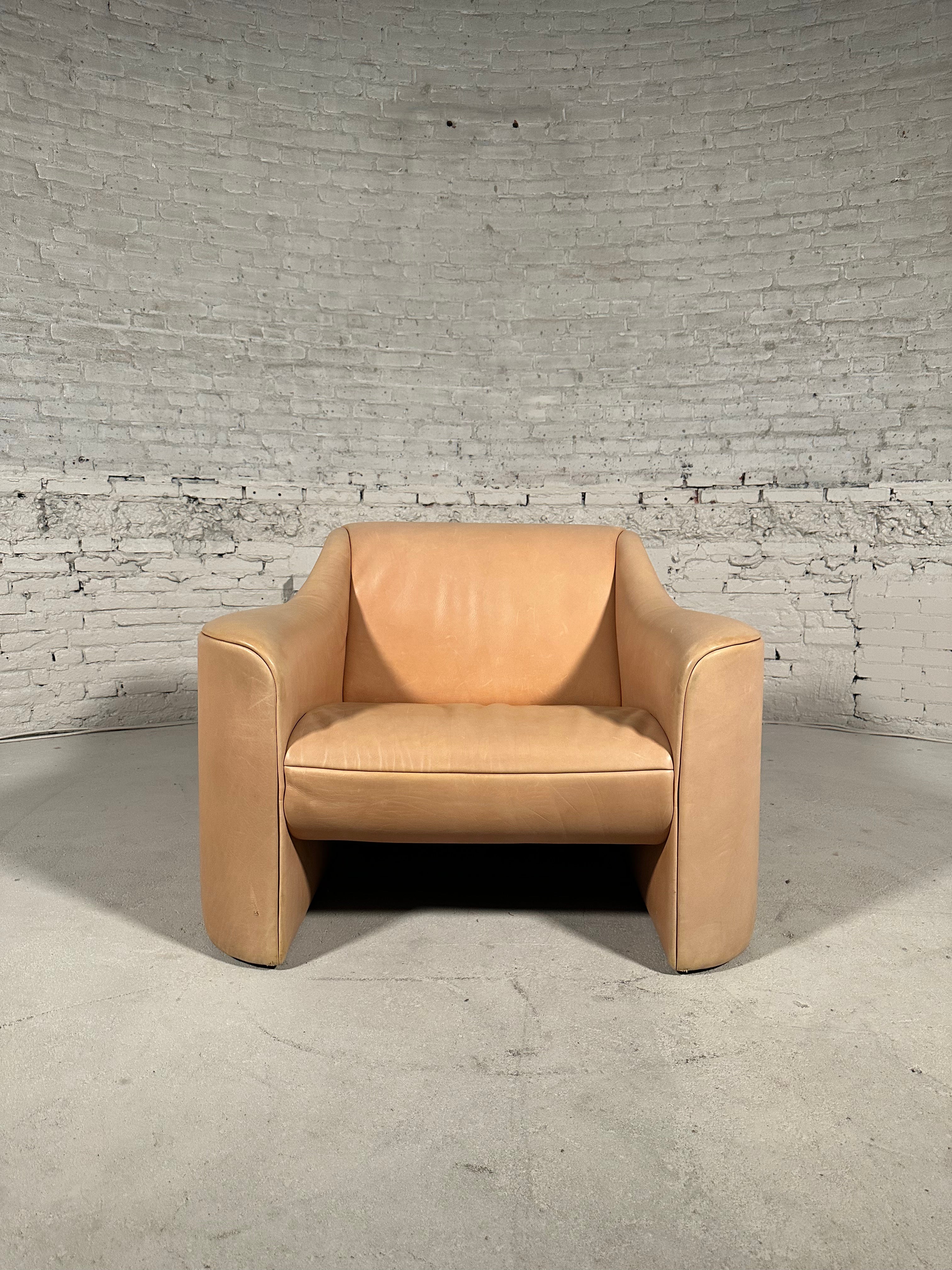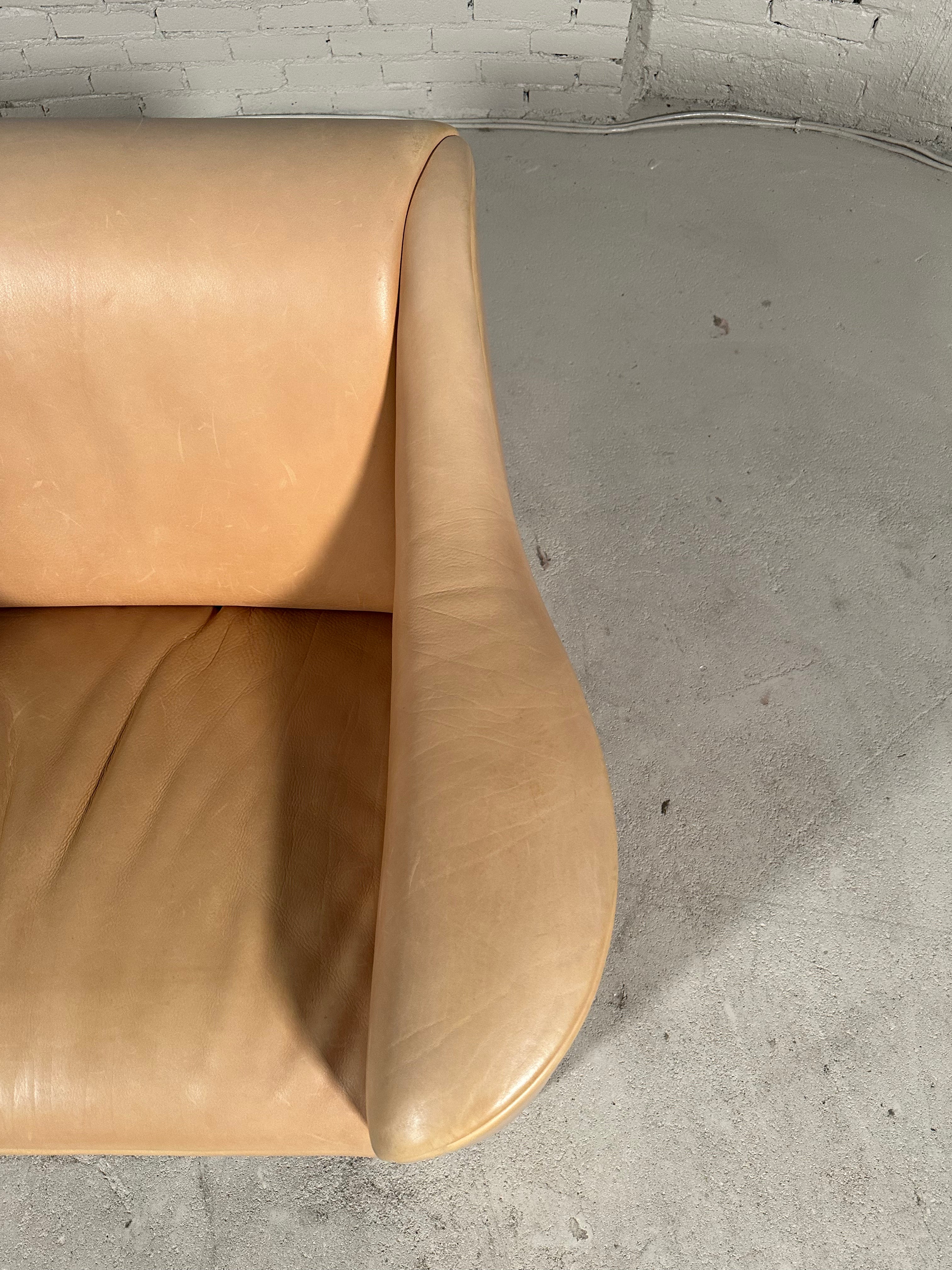 The Matteo Grassi Esquire armchair is a creation born from the minds of Luigi Massoni & Giorgi Cazzaniga. Upholstered in luscious, light brown/camel neck leather, adorned by the gentle touch of patina.