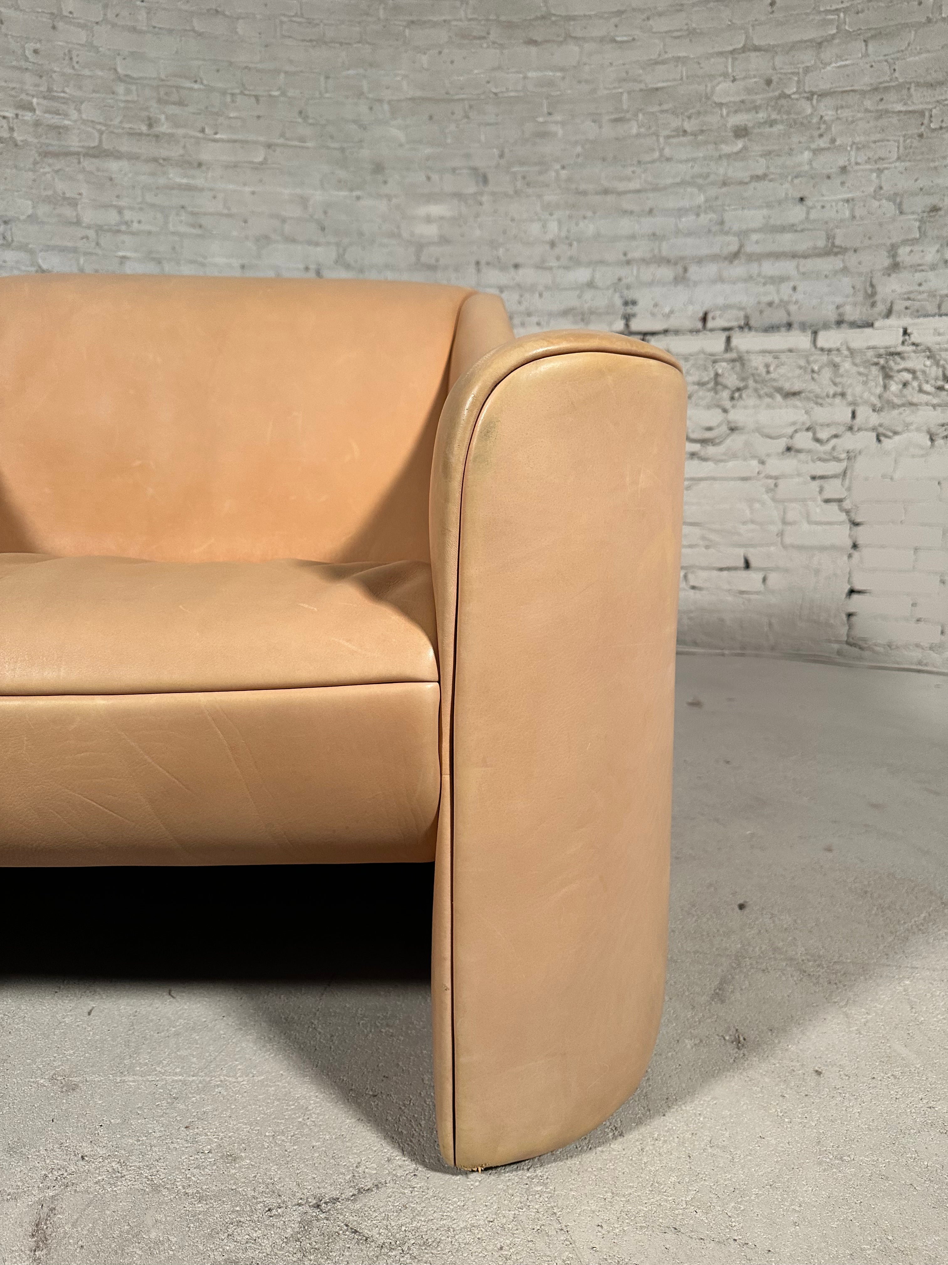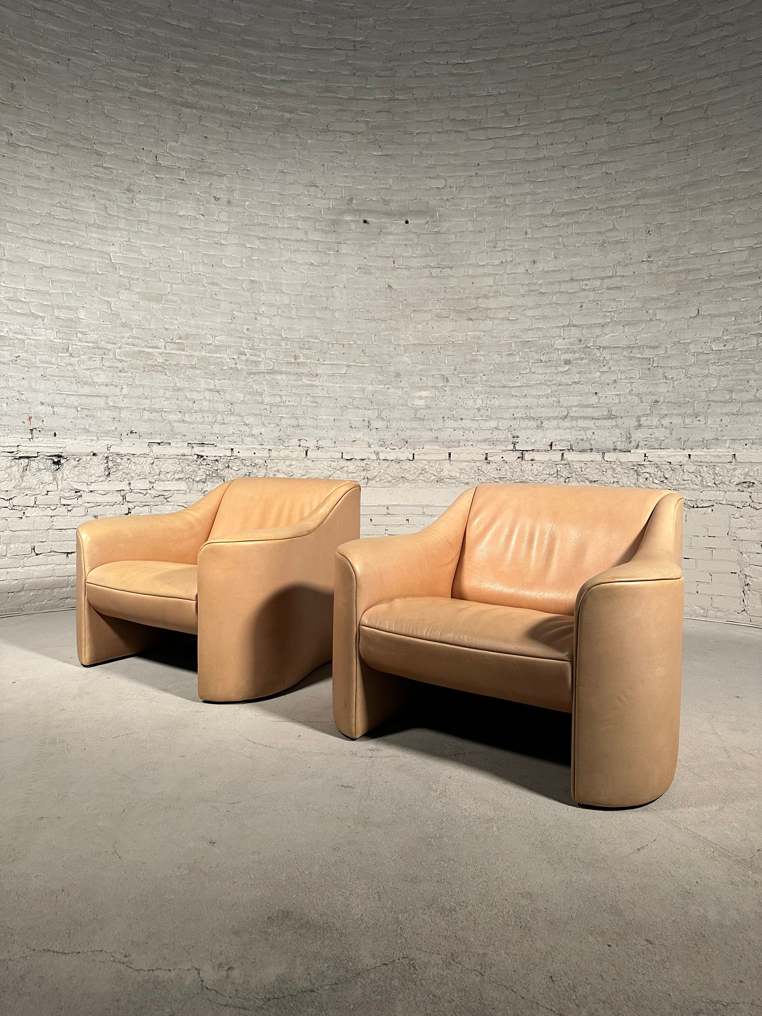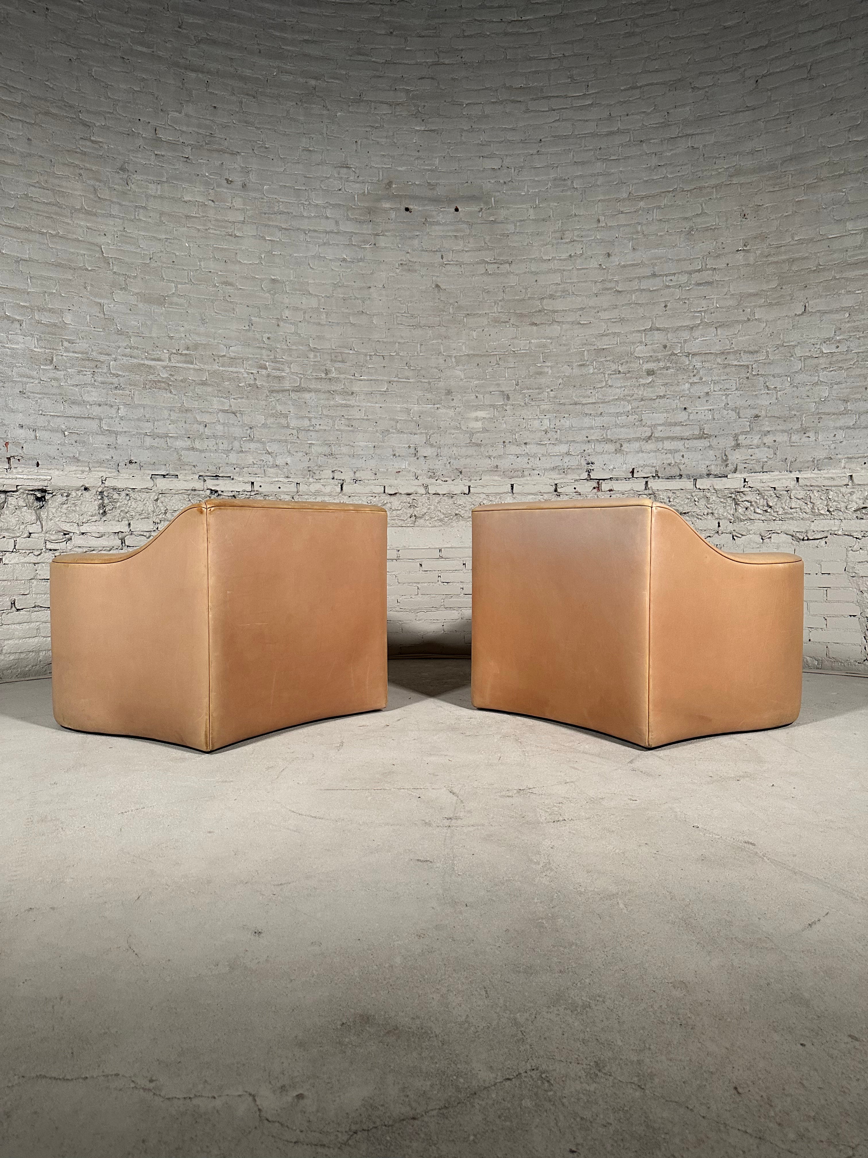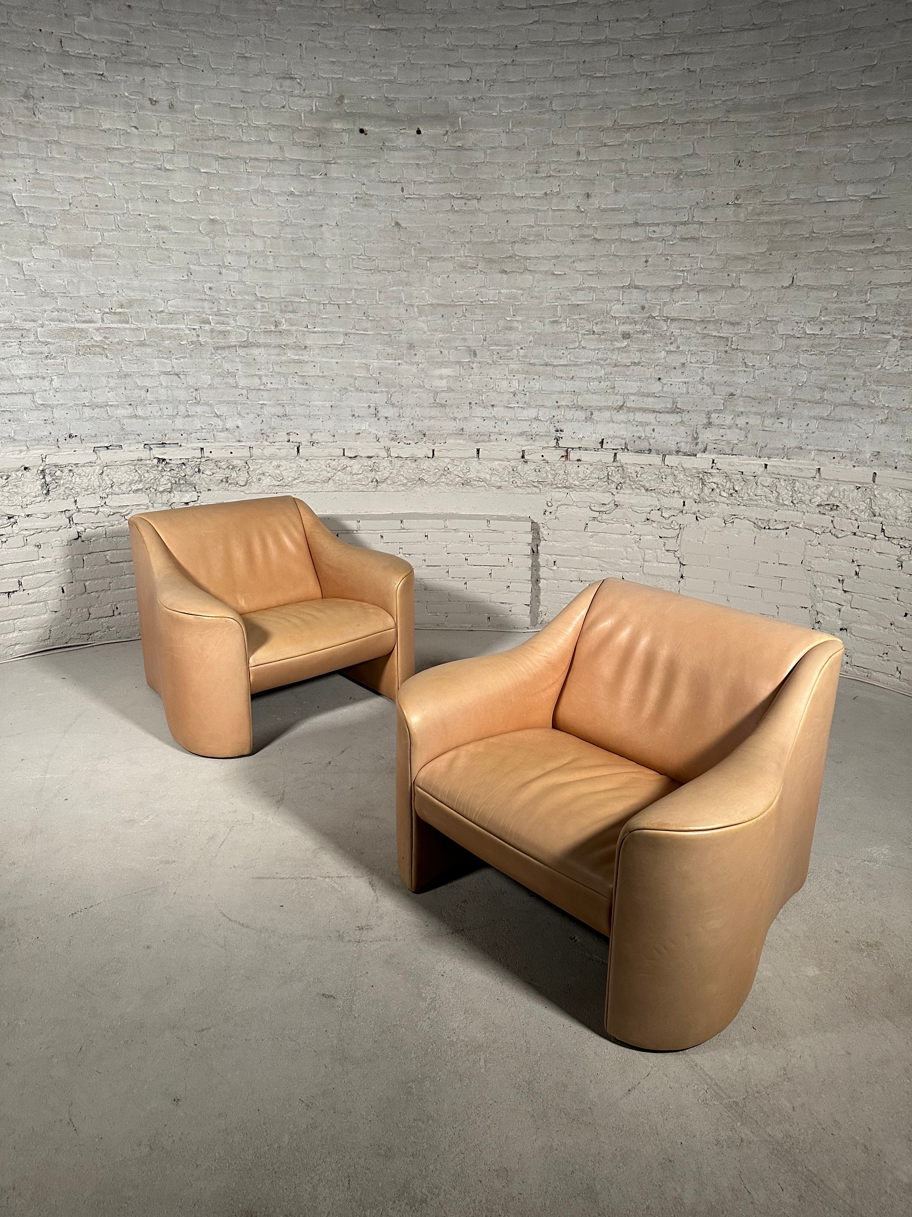 The Matteo Grassi Esquire armchair is a creation born from the minds of Luigi Massoni & Giorgi Cazzaniga. Upholstered in luscious, light brown/camel neck leather, adorned by the gentle touch of patina.