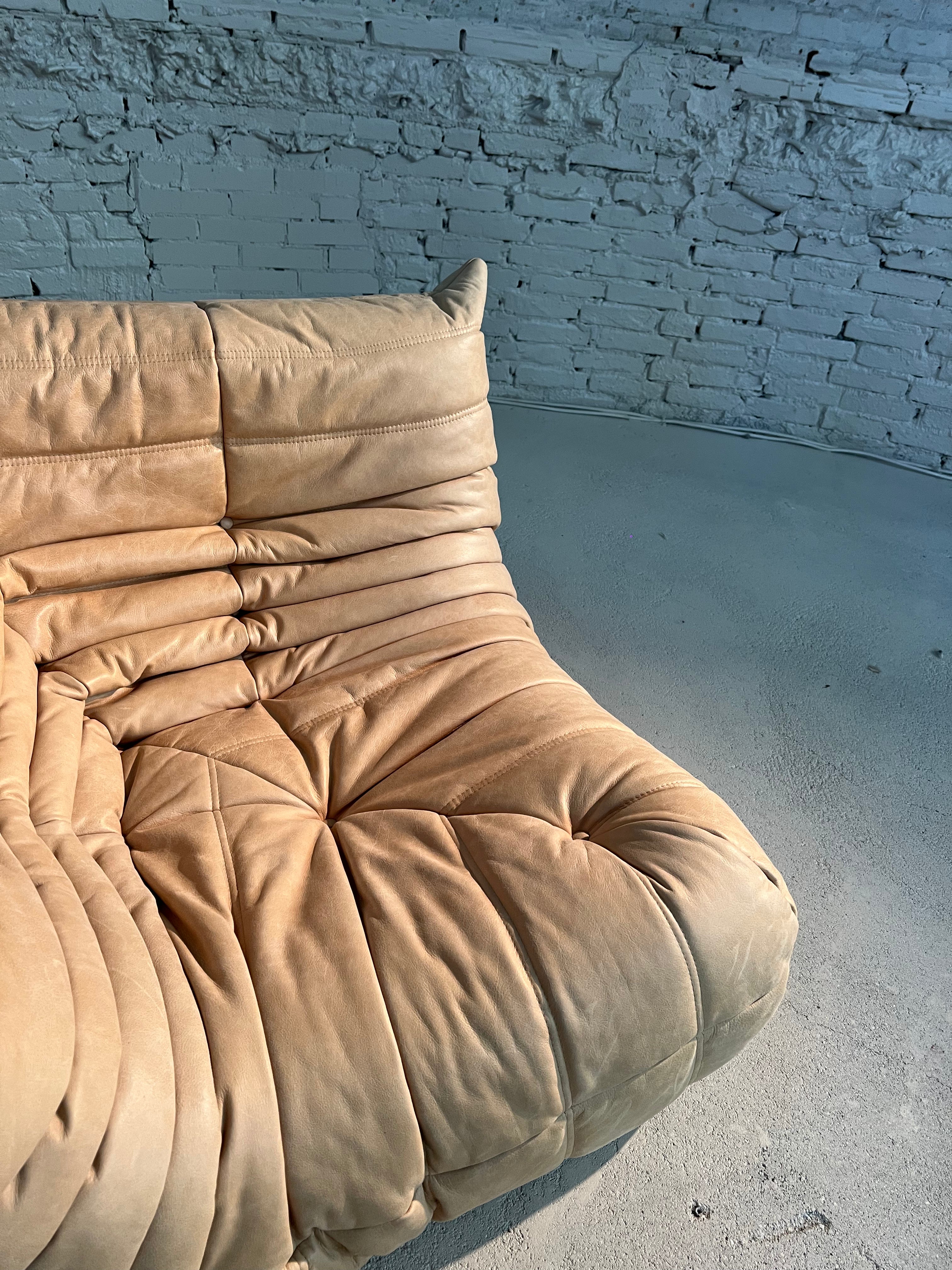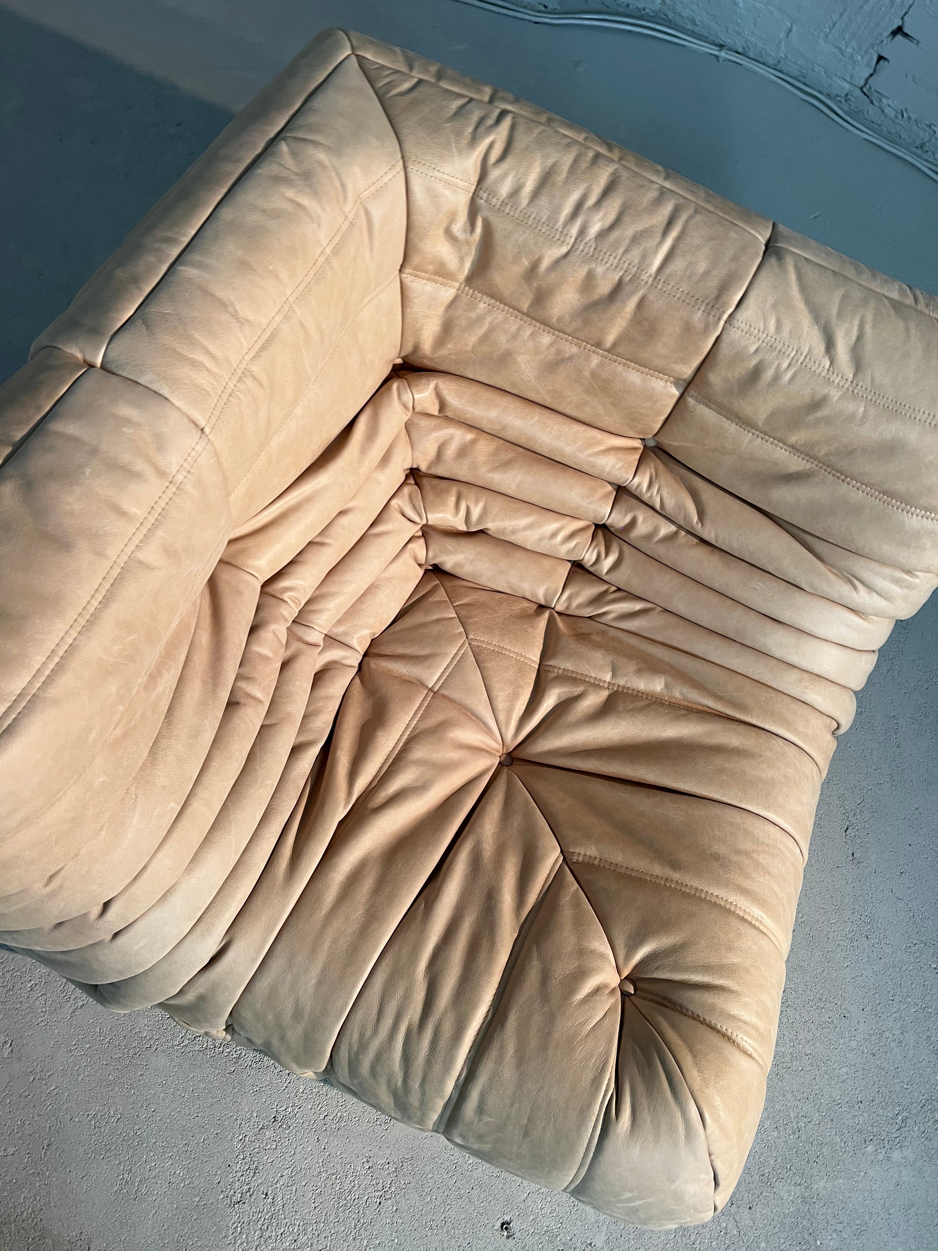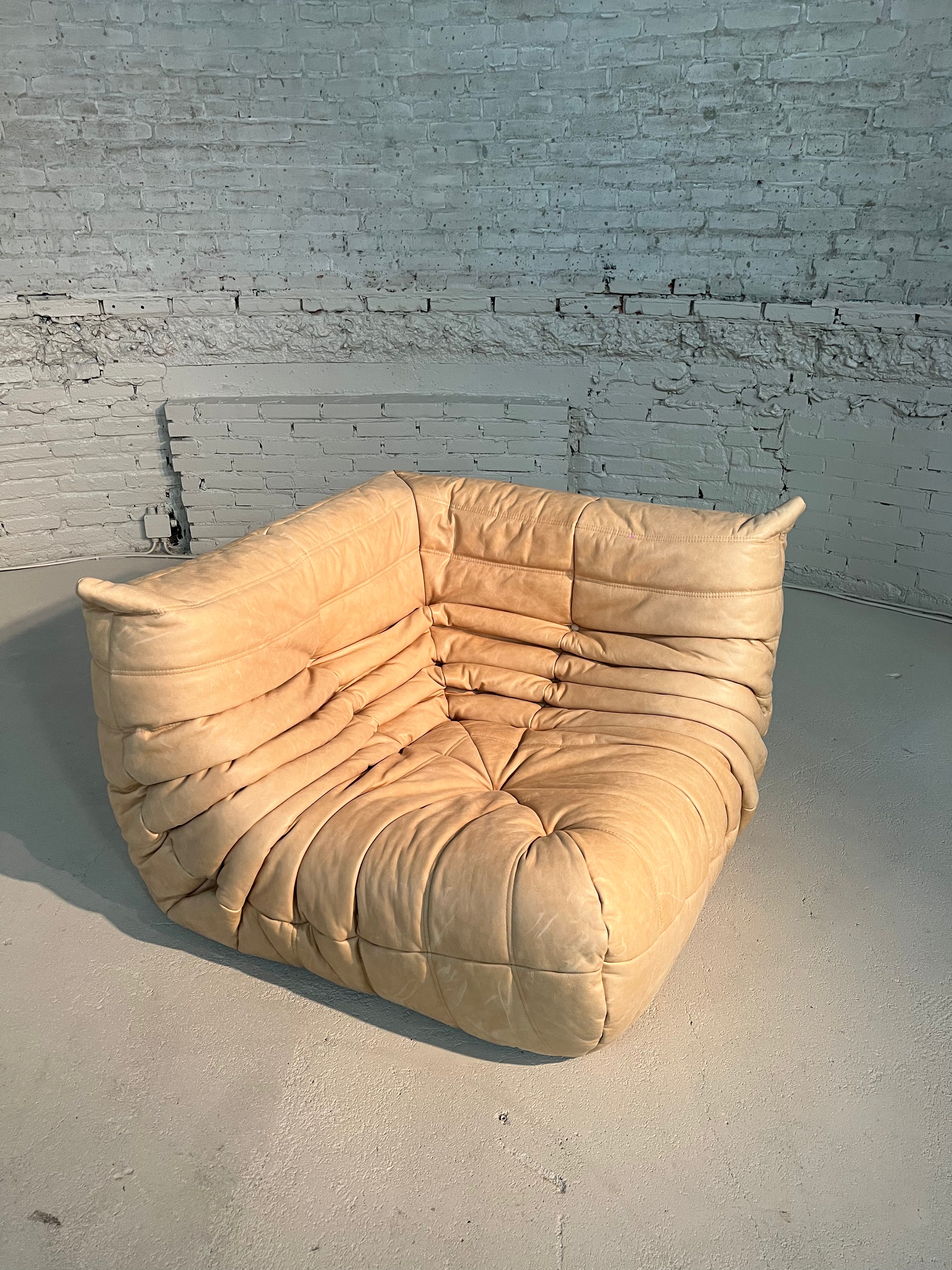 The iconic Togo sofa, designed by Michel Ducaroy for Ligne Roset in 1973, has become a design mid century Classic. This corner element in colour Sand is incredibly versatile and can be used alone or paired with other pieces from the range. The piece features the instantly recognizable pleated design, which gives the chair its relaxed aesthetic.
