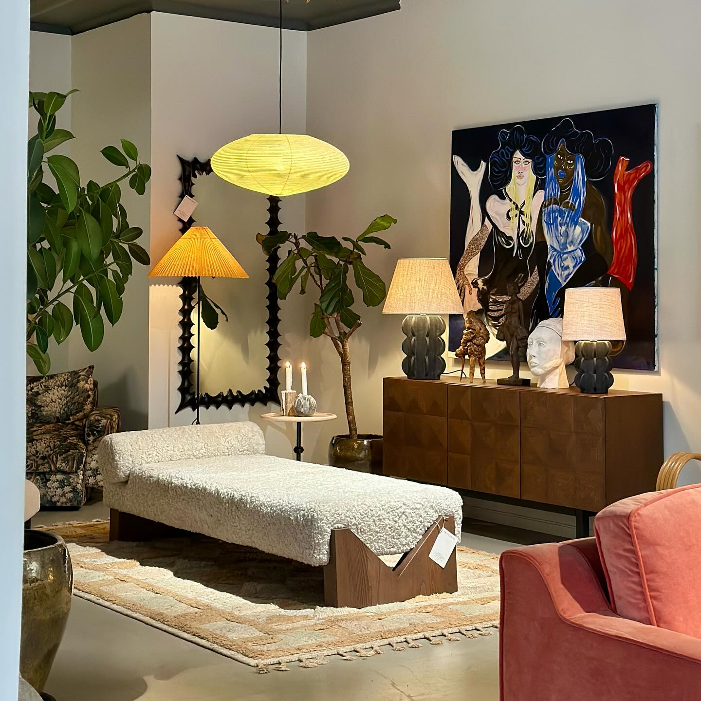 In this version, the V Daybed Boucle is covered in a soft sheepskin from Skandilock that adds a contemporary touch to it. V Daybed also come in upholstery options as velvet and boucle.