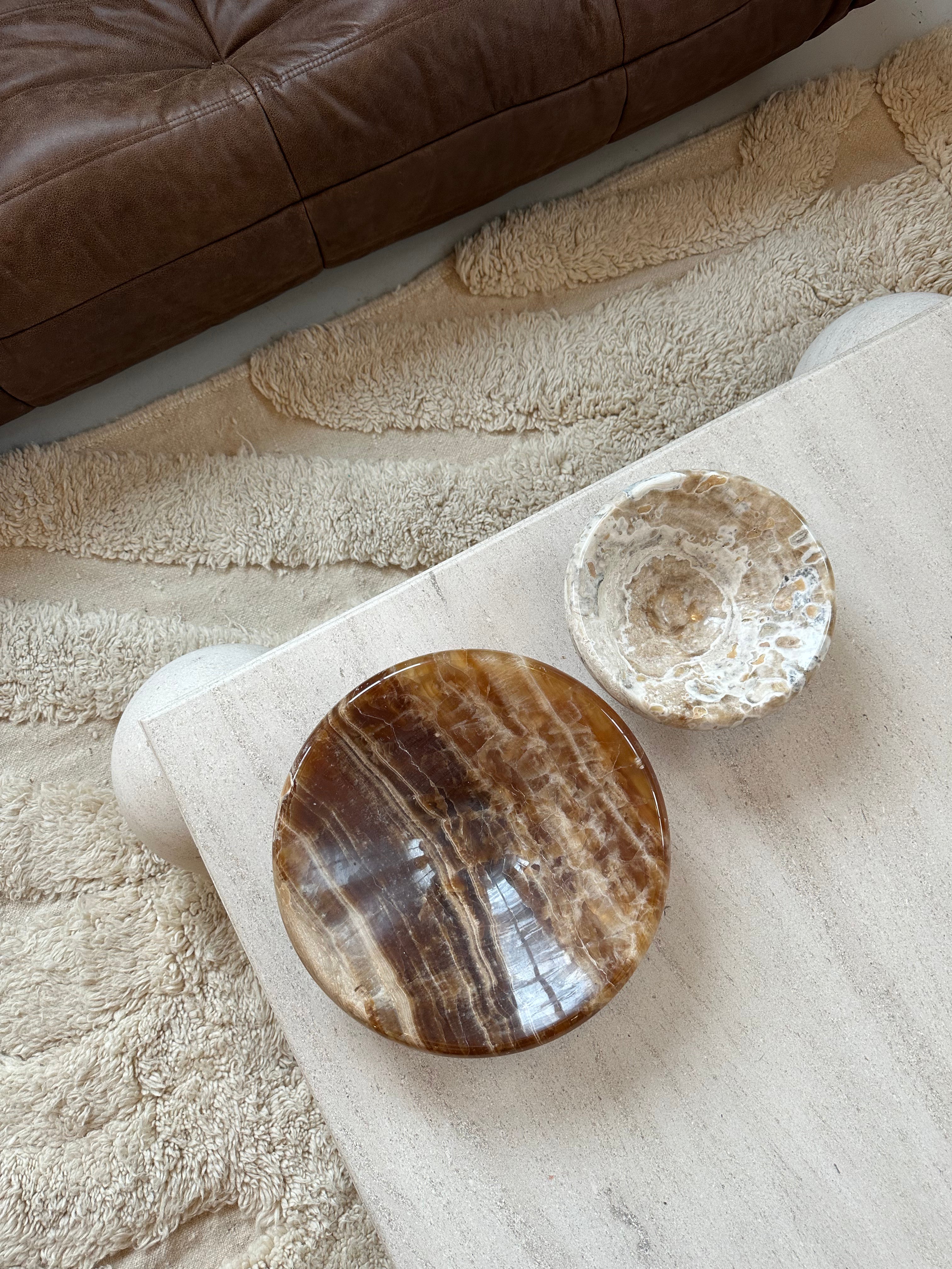 Crafted from onyx, these unique bowls are sure to make a bold statement in your living space. Perfect for displaying your favorite goodies and accessories with a touch of class!