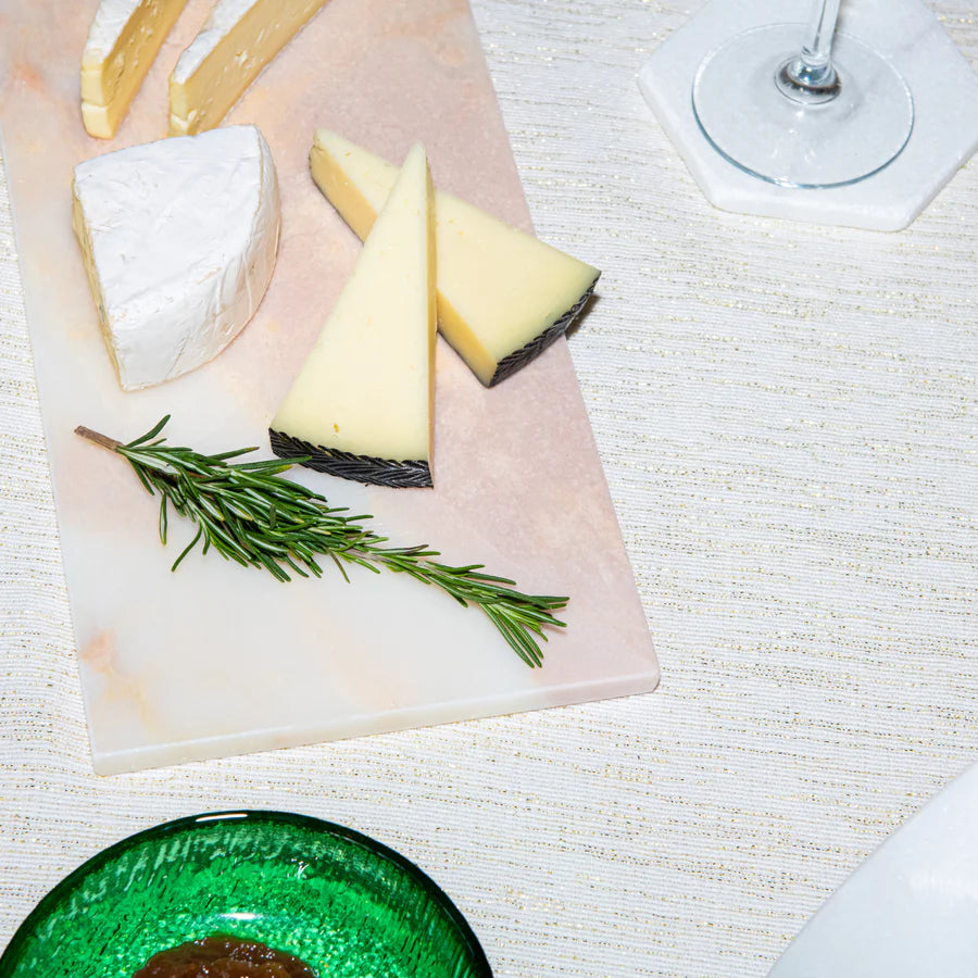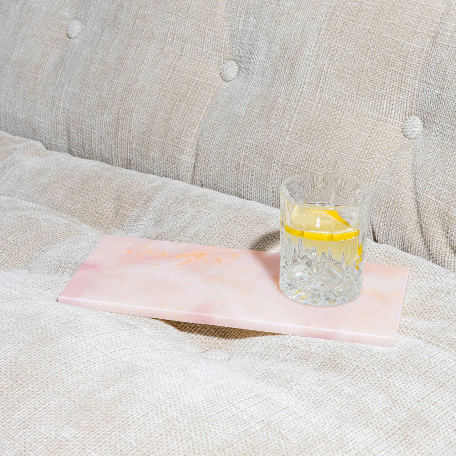 The pink marble board is perfect for serving finger food like tasty tapas or flavoursome fromage. Also makes a beautiful display for accessories like candle holders.