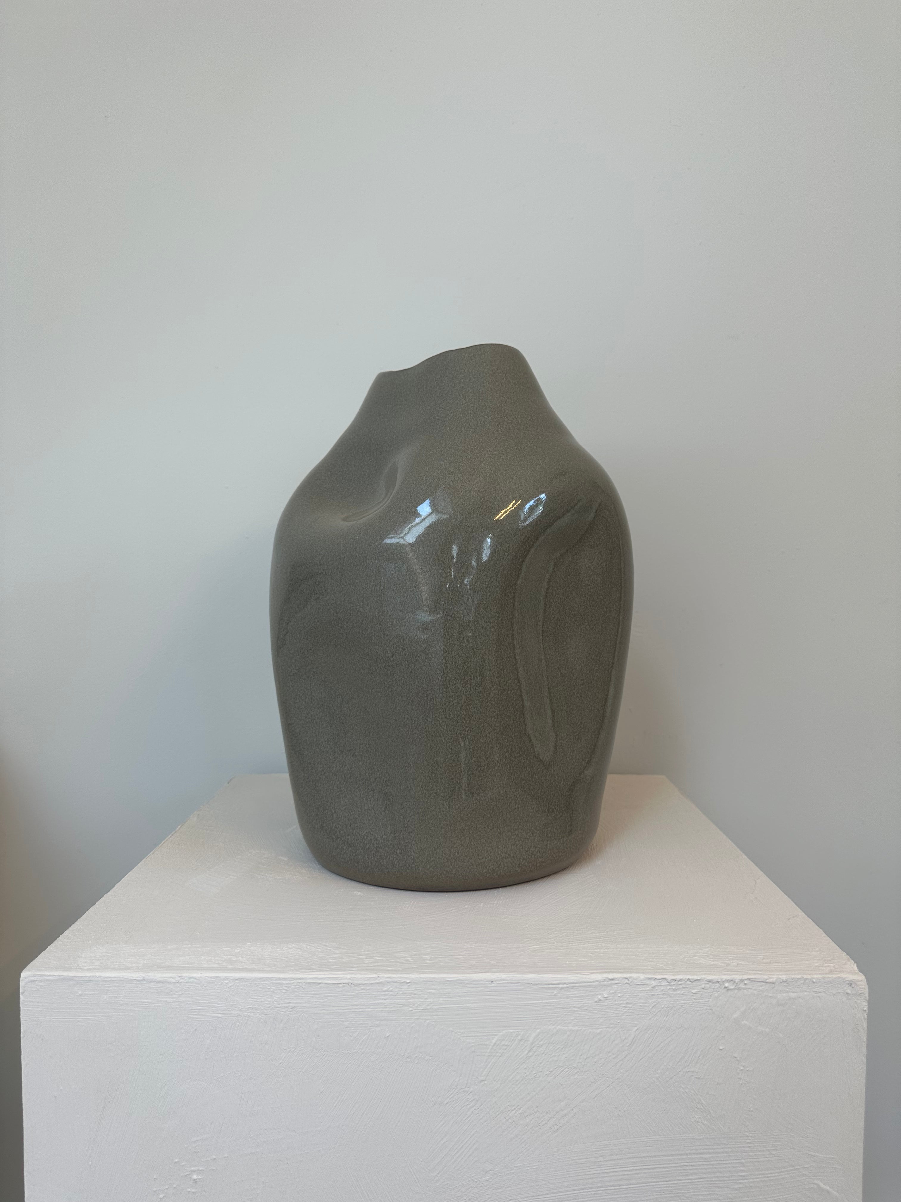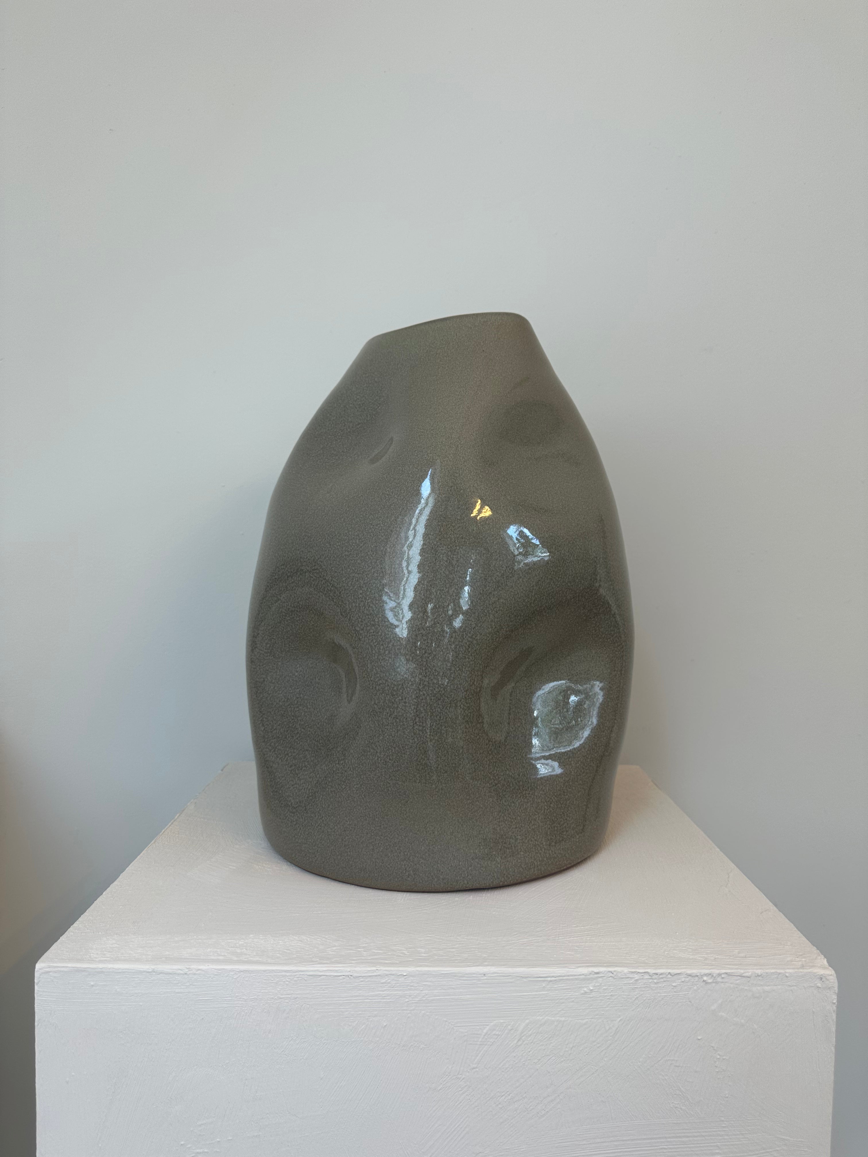Ceramic bulb vase in a kaki tone. Each vase has its own unique character since they are handmade out of clay and the vases are finished with a silicon coating. Available in 33 cm and 37 cm height.