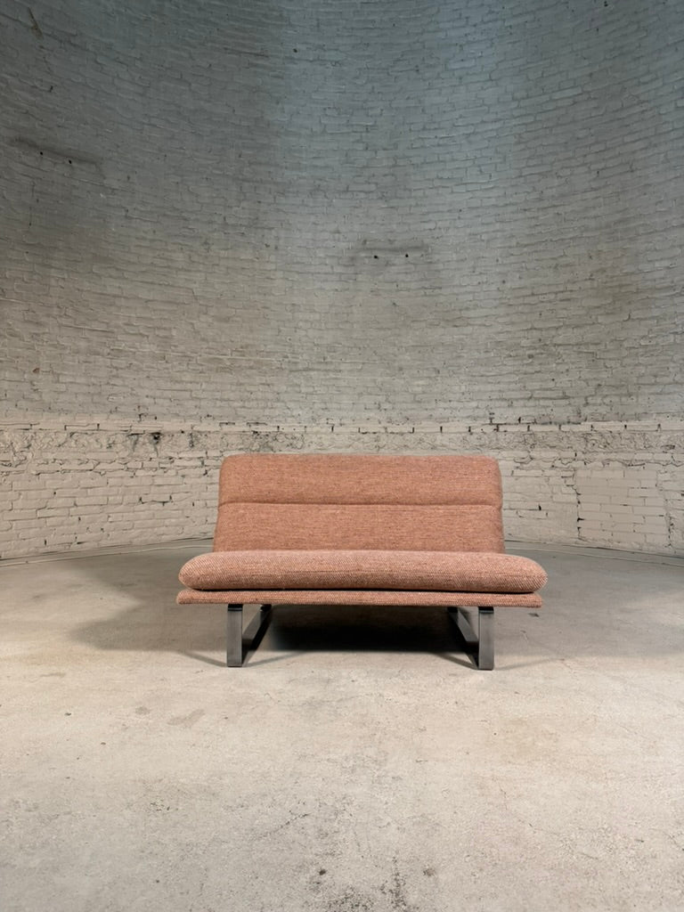 The Artifort two-seater designed by Kho Liang Ie, model C683 stands as a bold statement of mid-century design. Originally conceived in the 1960s, its clean lines and sleek metal base exude timeless sophistication.