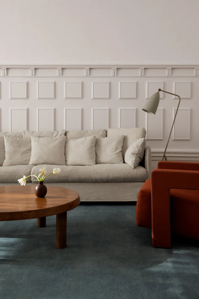 Grand is made to create a hotel-like feel in your home. It is a collection of rugs brought to life in a crisp color scheme inspired by Scandinavian nature. Crafted from New Zealand wool in a design that is as soft on the eyes as under your feet. To make you feel at home, anywhere in the world.