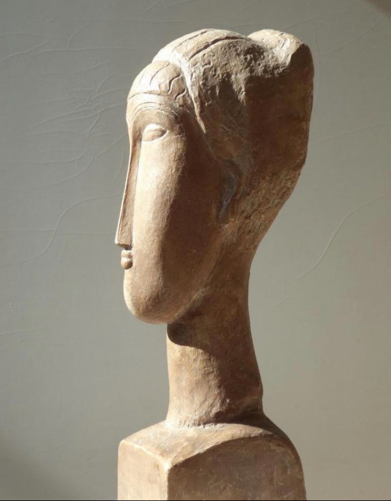 Tête de Femme, inspired by Modigliani, was produced by Austin Productions in 1961. Founded in Brooklyn in 1952, Austin Productions specialized in creating high-quality reproductions of classic sculptures by renowned artists. Their pieces are well-known for their craftsmanship and are highly collectible.