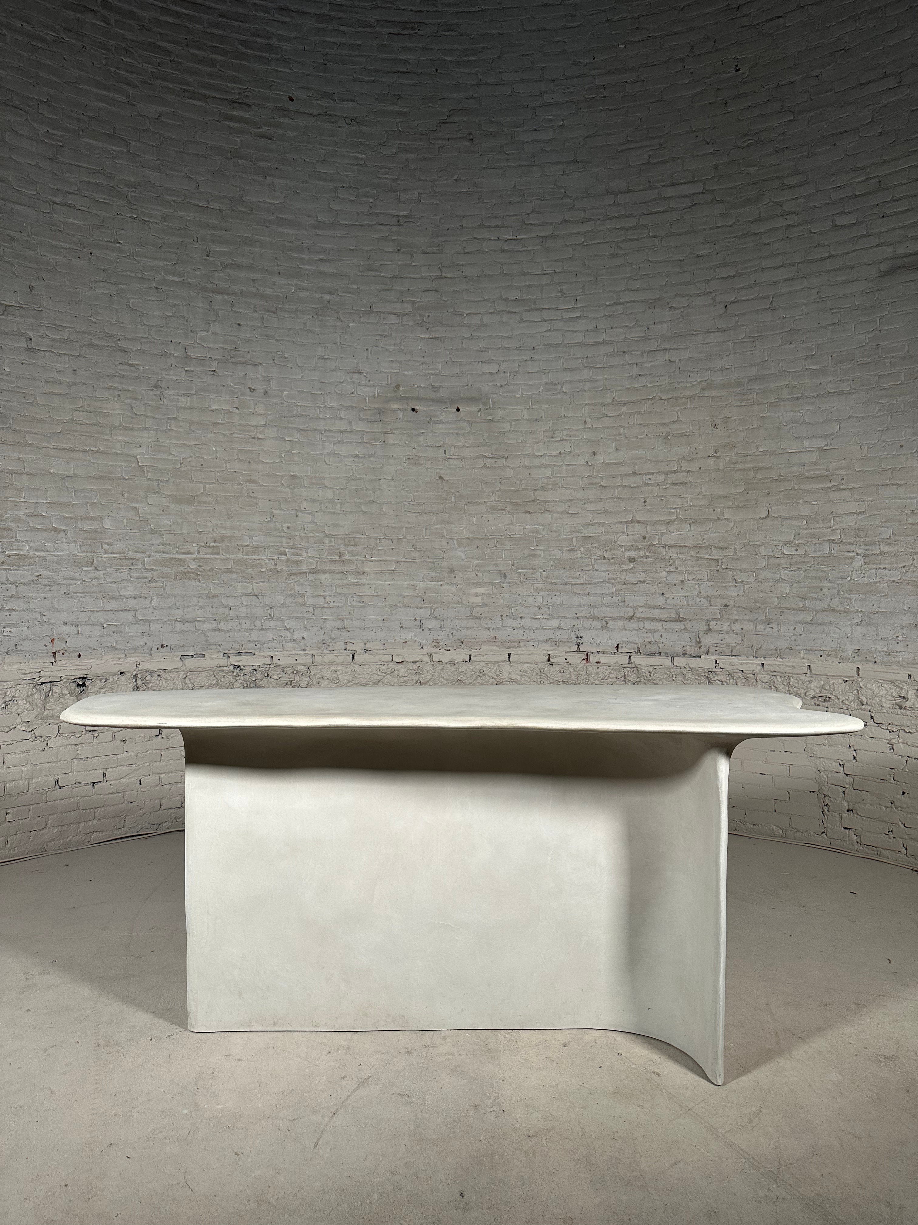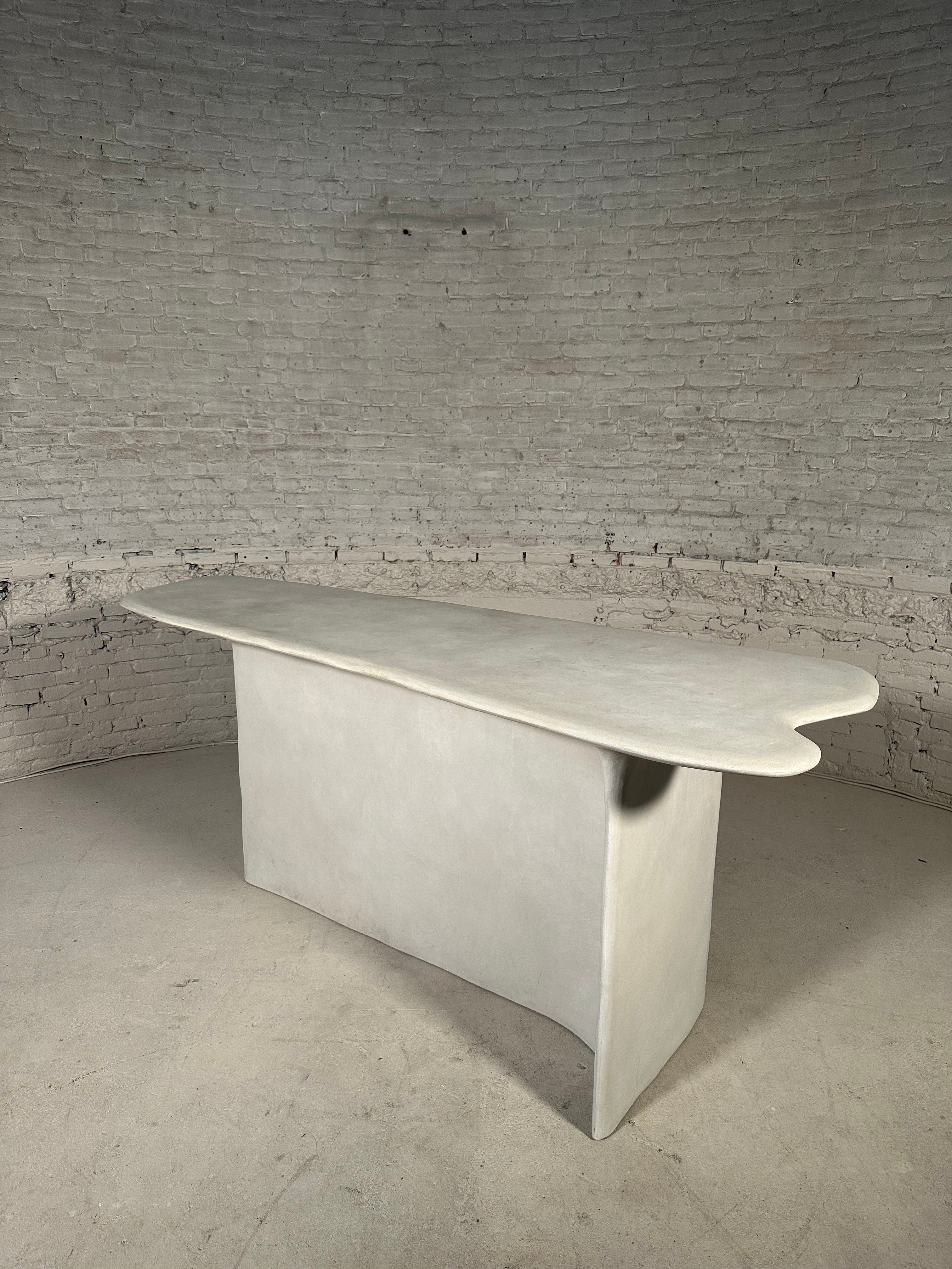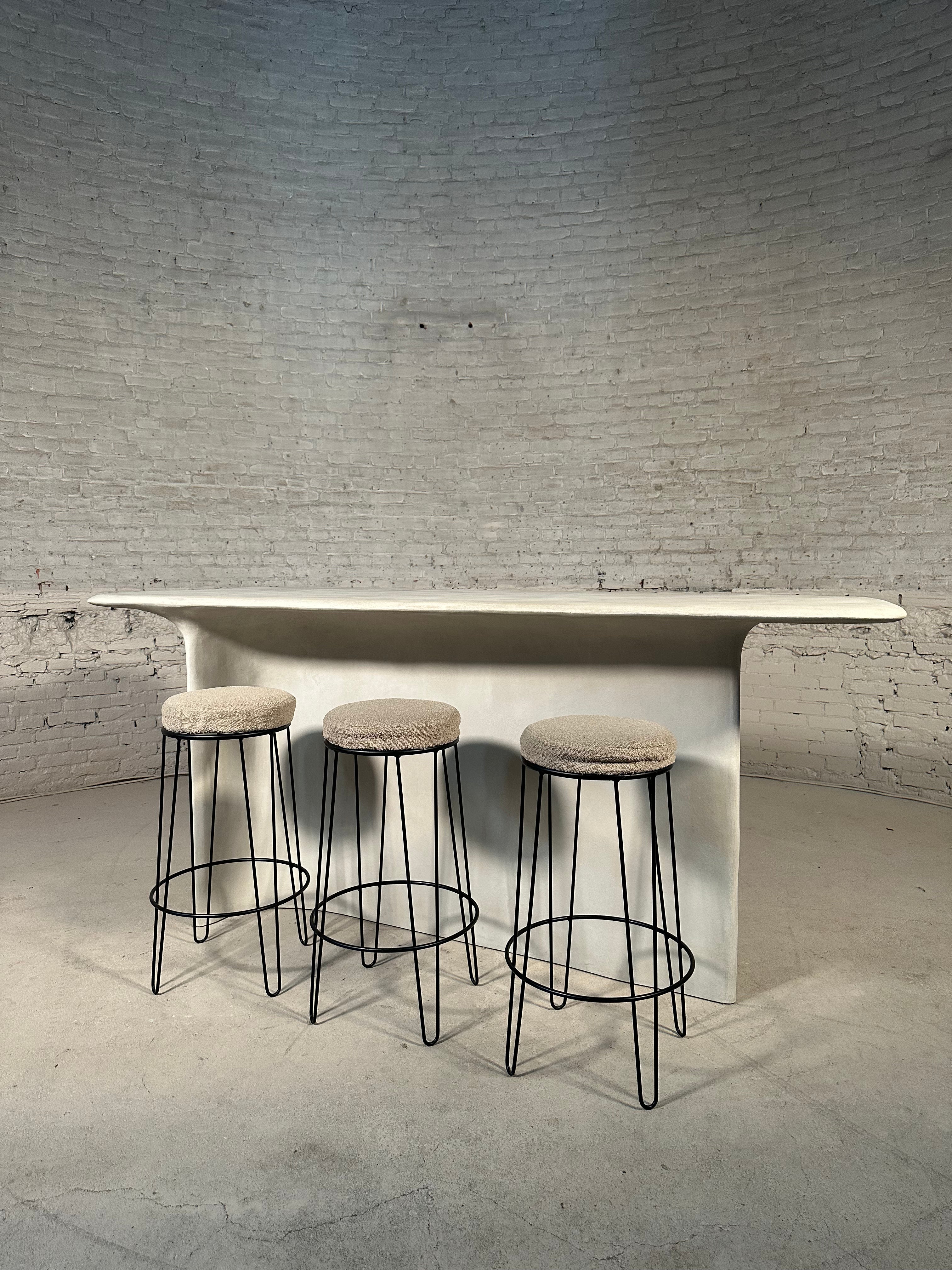 Organic bar table in microcement, The bar table features a unique and modern design due to its organic shape. Crafted with microcement, this bar table adds a touch of sophistication to any space.