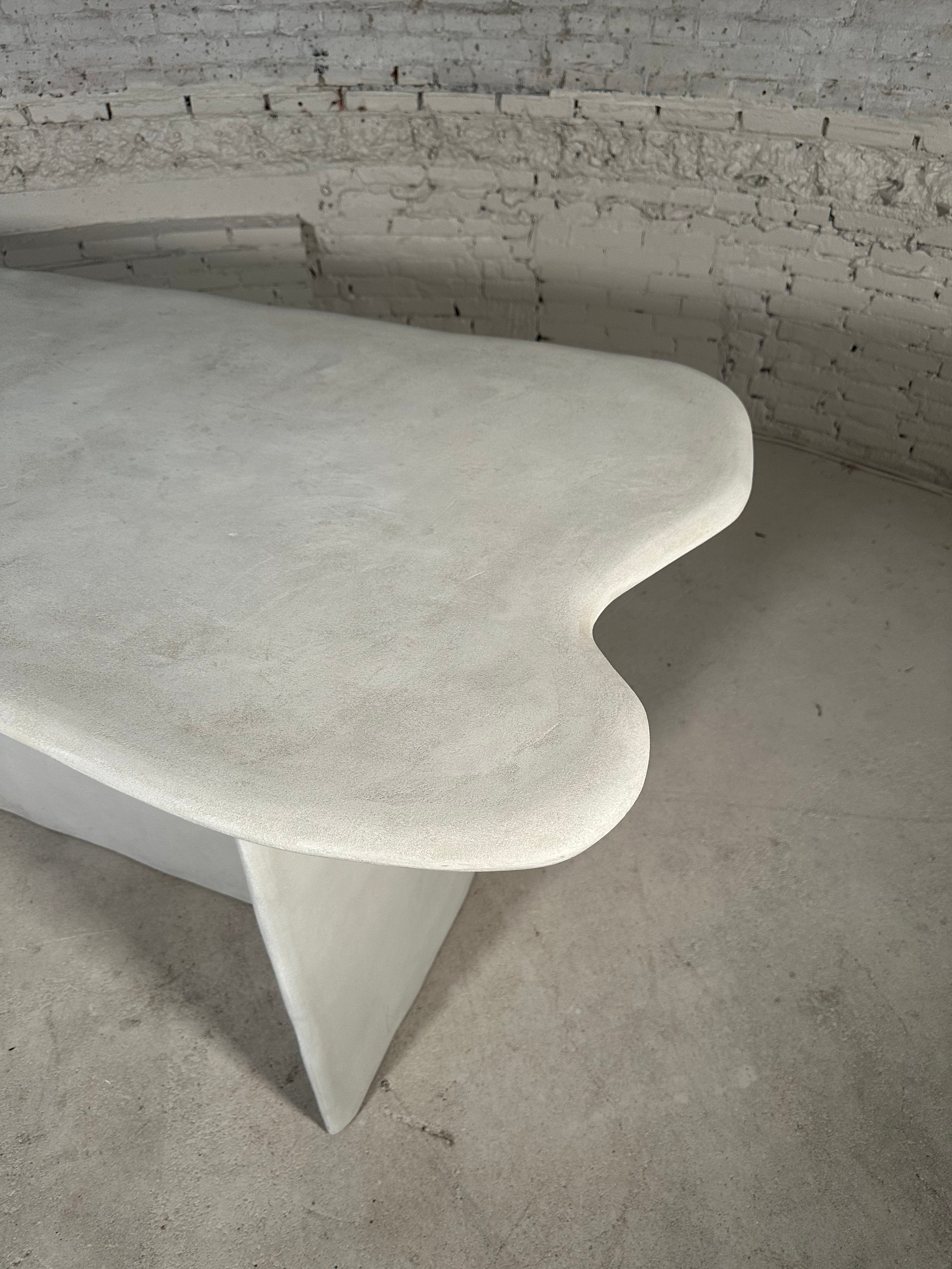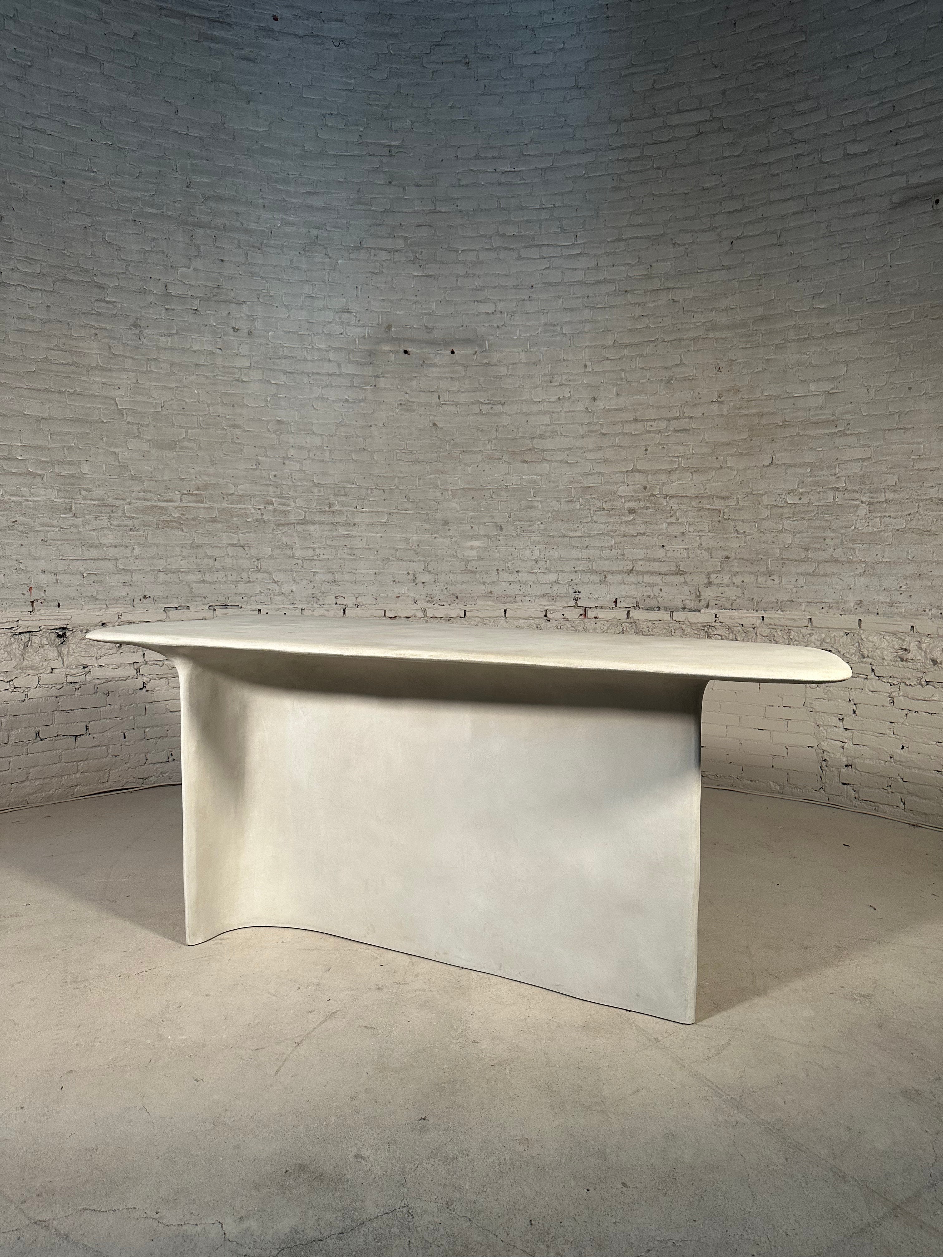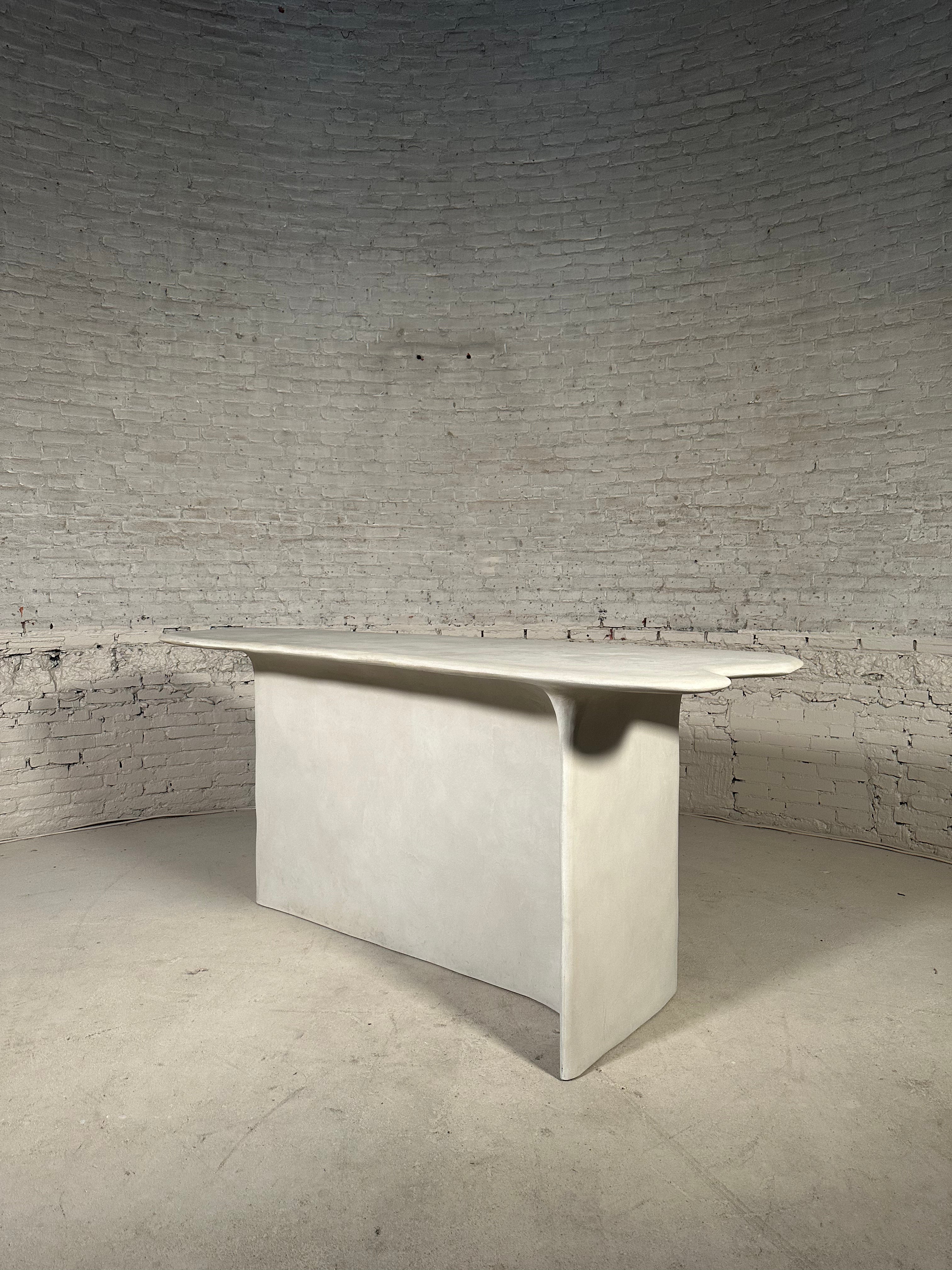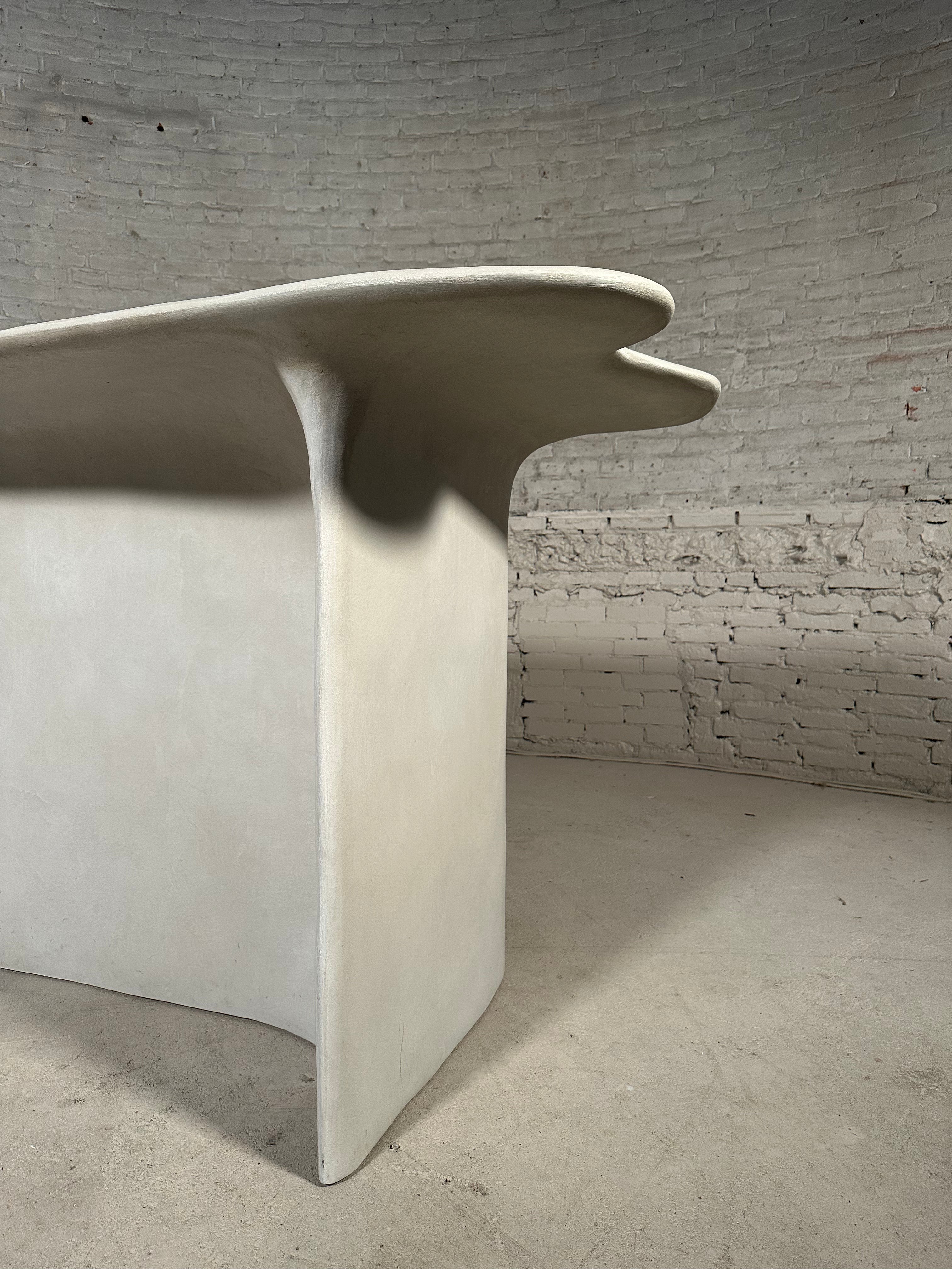 Organic bar table in microcement, The bar table features a unique and modern design due to its organic shape. Crafted with microcement, this bar table adds a touch of sophistication to any space.