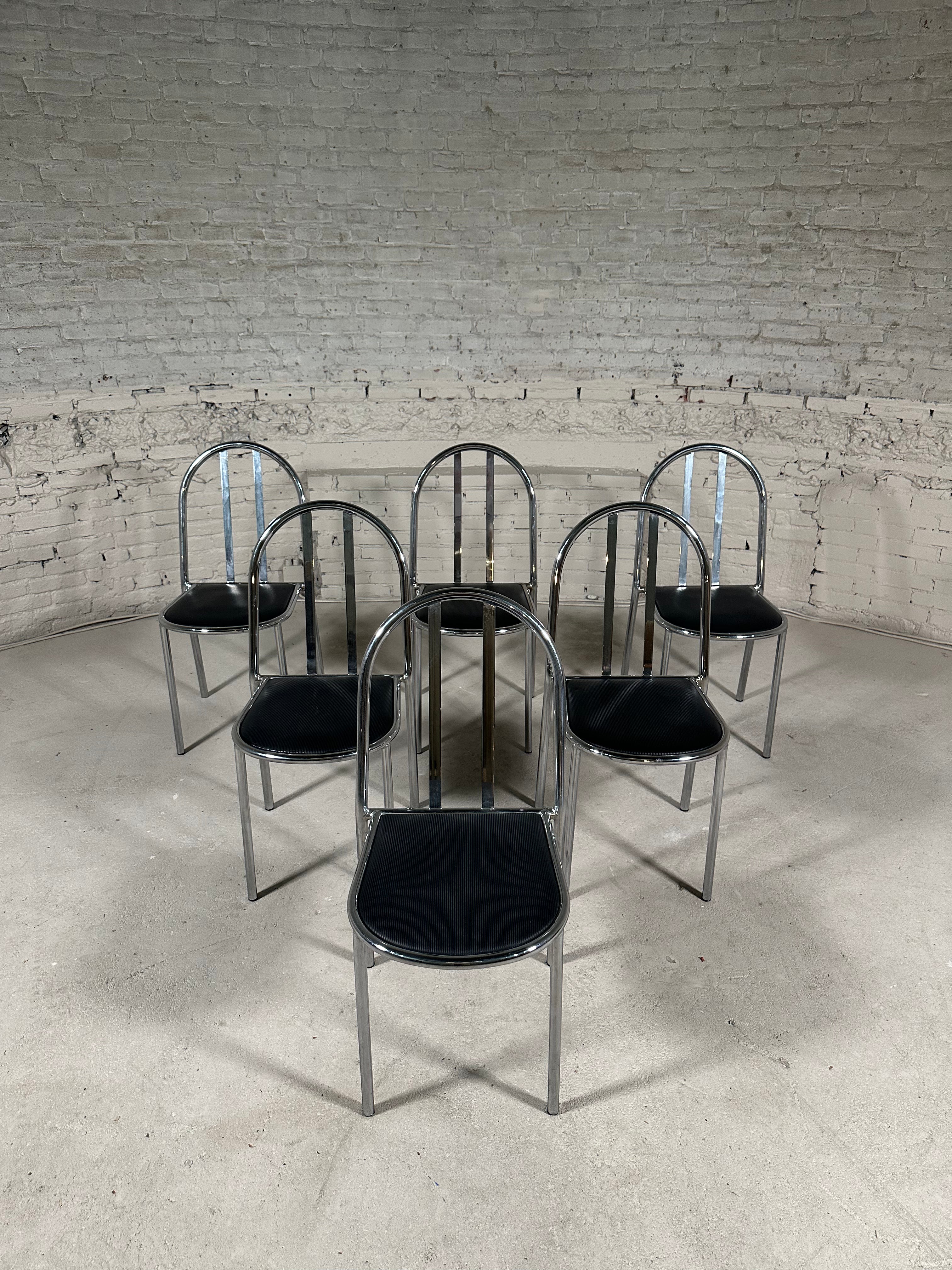 Robert Mallet-Stevens for Stevens Designs, set of six dining chairs model 222, France, 1980's.