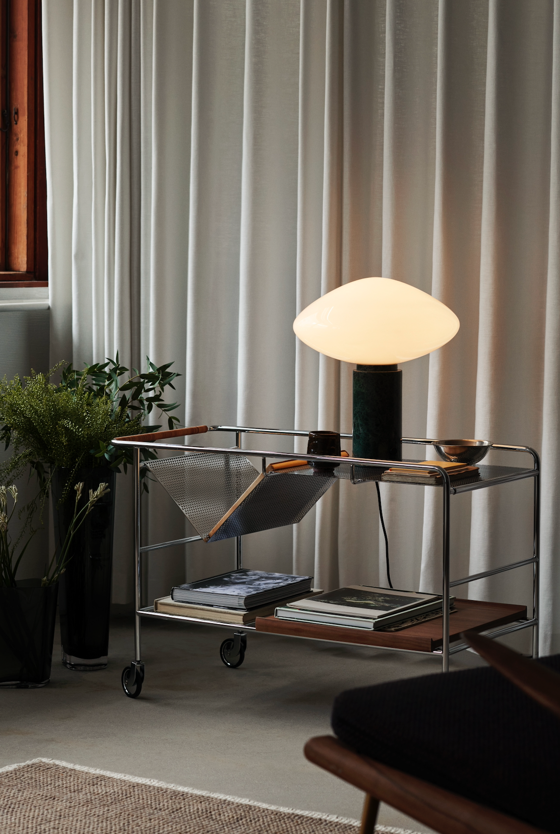 The result was a collab with &Tradition that produced a sleek trolley with a distinctive V-shaped design built into its surface that allows stacked books to be easily stored and displayed.